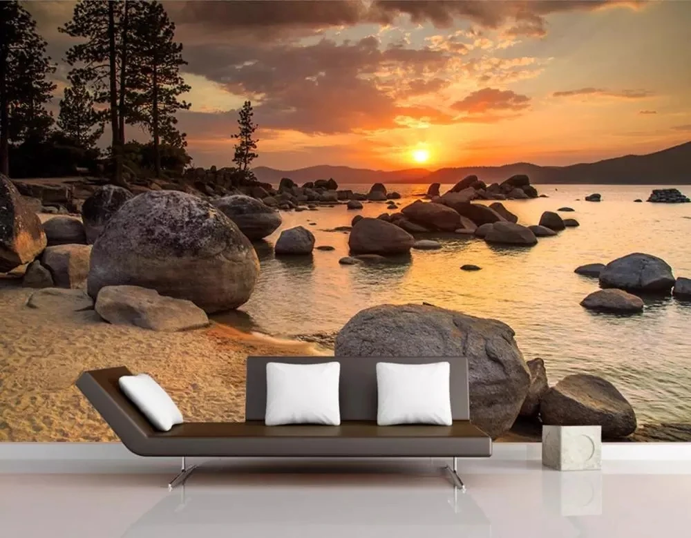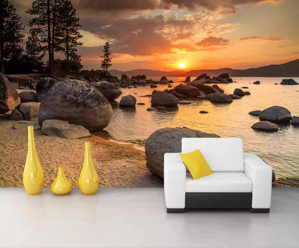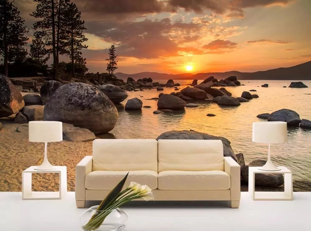 Самоклеящиеся 3D-обои на заказ, настенная фреска с изображением Морского Пейзажа, заката, пейзажа, украшение для дома, гостиной, спальни