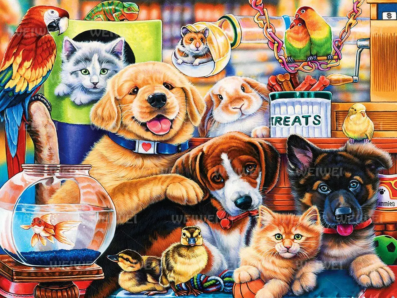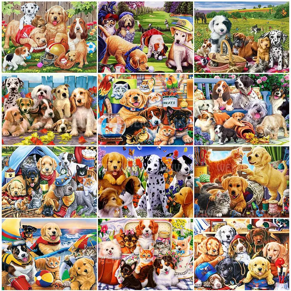 Алмазная 5D картина с изображением собак и клубов, мультяшная вышивка крестиком, квадратная круглая Алмазная вышивка с собакой, мозаика с изображением животных, стразы, Декор