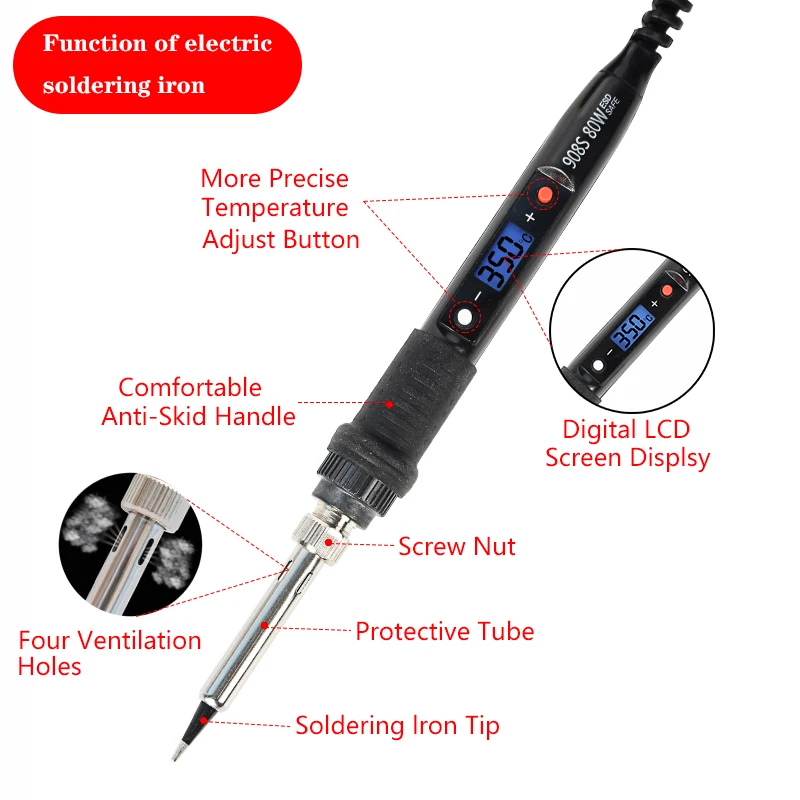 Набор паяльников с регулировкой температуры, 220 В, 80 Вт, ЖК-паяль...