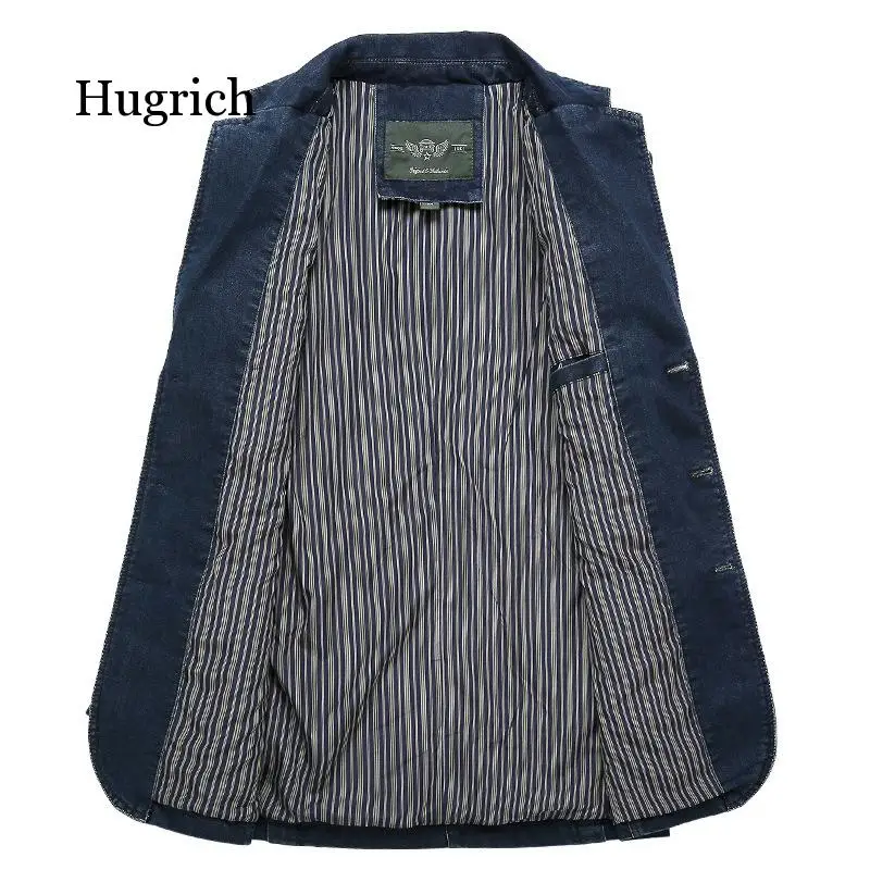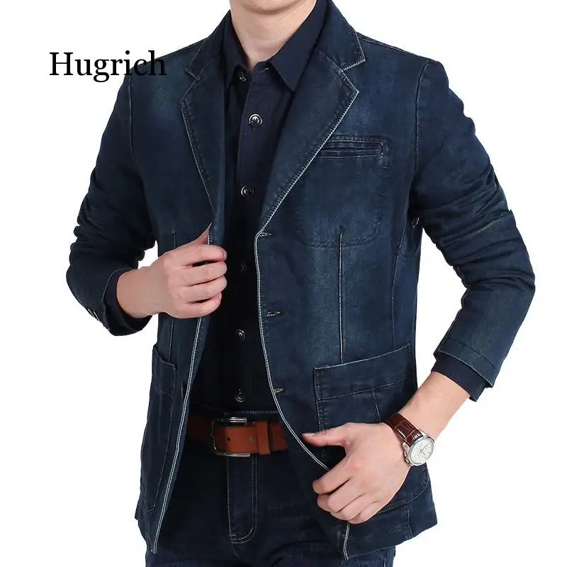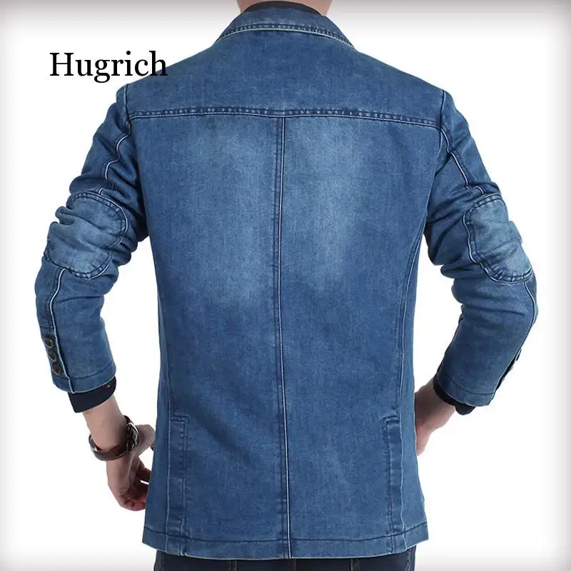 Мужской джинсовый Блейзер 4XL, Модный хлопковый винтажный костюм, верхняя одежда, мужское синее пальто, джинсовая куртка, Мужские приталенные джинсовые блейзеры