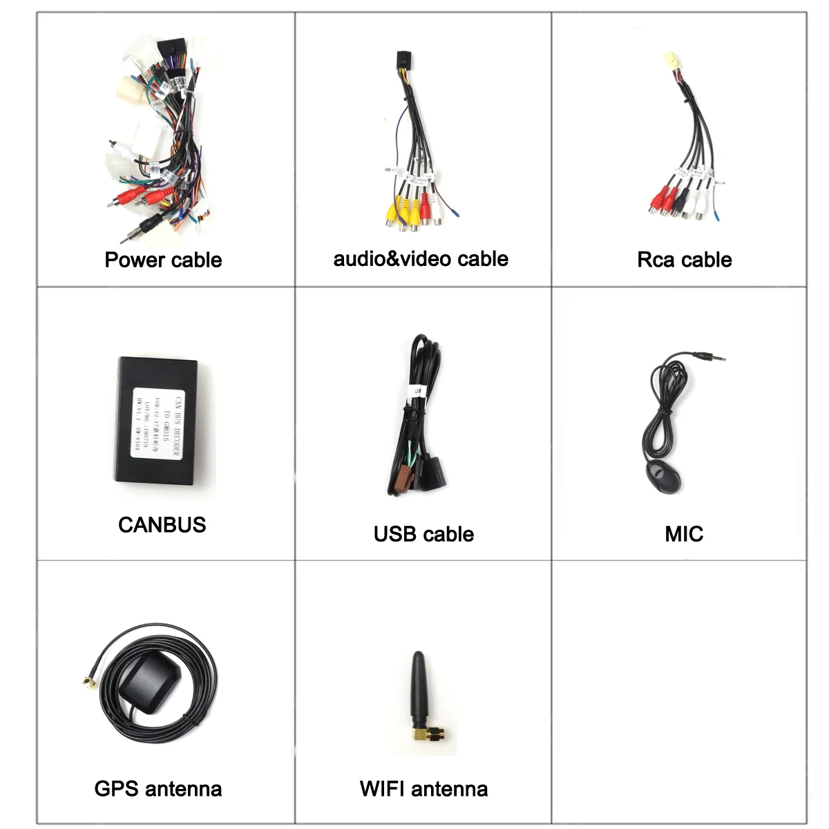 Наш продукт поставляется с GPS антенной, gps-картой для вашей страны, usb-адаптером, аудио и видео входным кабелем, кабелем питания... и т. д., все наборы для установки будут в посылка.