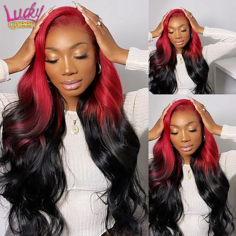 Перуанские объемные волны 13x4 HD прозрачные кружевные фронтальные человеческие волосы парики красный с черным цветом 4x4 парики на шнурке натуральные волосы парики