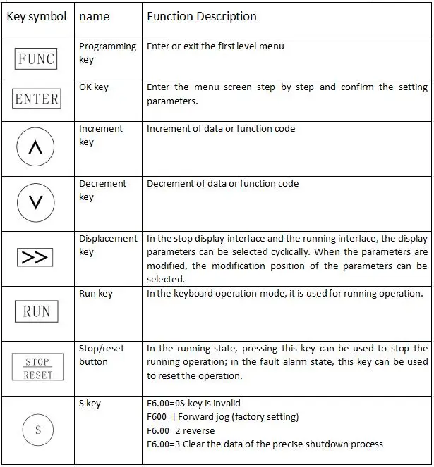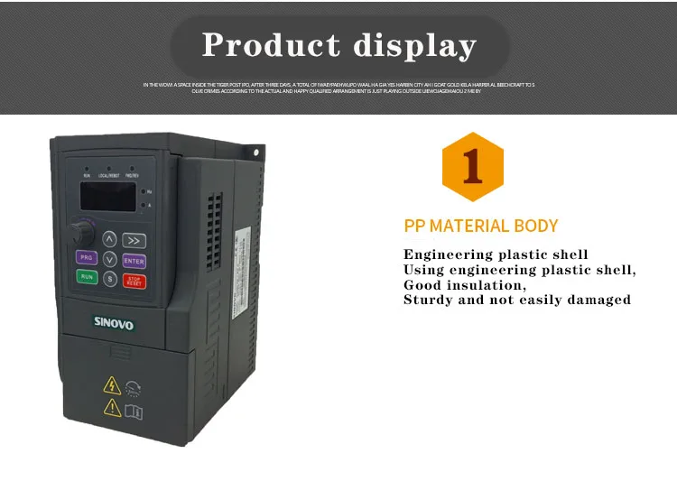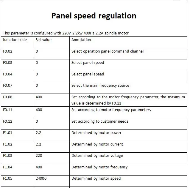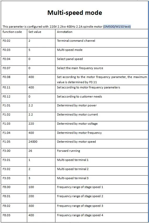 Максимальная частота: 1500 Гц Диапазон входного напряжения: однофазный: 220 В диапазон: -15% ~ + 20% Несущая частота: 1,0 K ~ 9,0 кГц; Несущая частота может быть автоматически регулируется в зависимости от нагрузки характеристики. Вход частота Разрешение: Цифровая настройка: 0,1 Гц аналоговые окружающая Обстановка: Максимальная частота X0.1 % Емкость перегрузки: 150% Номинальный ток 60s; 180% Номинальный ток 2s. Torque boost автоматический torque boost; Ручной torque boost 0.1% ~ 30.0%. Кривая V/F: три метода: линейный тип; Многоточечный тип; Квадратный тип V/F кривая. Ускорение и торможение кривая линейная или S-кривая ускорение и торможение методы: четыре ускорения и замедление раз; Ускорение и замедление диапазон времени 0,0 ~ 6553.5s. Торможение постоянного тока AC/DC торможения исходная частота: 0,0 Гц ~ верхний предел частоты; Времени торможения: 0,0 ~ 36,0 секунд, торможения текущее значение: 0,0 ~ 100.0%. Чехол-повязка на управления: пробежки Частотный диапазон: 0,00 Гц ~ верхний предел частоты; Пробежки ускорения и замедления 0,1 ~ 6553.5s. Простой PLC мульти-скорость работы: максимум 16-скорость работы может быть получена за счет встроенной PID: удобно для того, чтобы осуществить процесс замкнутому циклу системы, который содержит функции сна и пробуждения. Автоматическая регулировка напряжения (AVR): Когда напряжение сети изменяется, оно может автоматически поддерживать постоянное выходное напряжение. S ключ: программируемый ключ: для удовлетворения индивидуальных потребностей клиентов. Он может реализовать команду jog/reverse и очистить данные точного процесса stop Текстильный контроль частоты качания: различные треугольные функции управления частотой волн. Точное управление отключением: три точных режима отключения, включая счетчик, фиксированную длину и время. Запуск командных каналов: три канала: Настройка панели управления, настройка терминала управления и настройка порта последовательной связи. Источник частоты: 9 видов источника частоты, вспомогательный источник частоты. Гибкая реализация Дополнительного частотного источника тонкой настройки и частотного синтеза Входные клеммы: пять цифровых входных терминалов (X1 ~ X5). X5: используется в качестве импульсного входного терминала одновременно. Аналоговый входной терминал: может быть выбран вход напряжения или ток. Выходной терминал: один выходной терминал 0C, один выходной терминал реле; Один аналоговый выходной терминал, выход A0, 0/2 ~ 10 В. Отображение рабочей панели: 26 параметров состояния, таких как установленная частота, выходная частота, выходное напряжение и выходной ток могут отображаться. Существует два способа просмотра параметров состояния для пользователей. Двухрядная светодиодный панель управления: (дополнительно, он может отображать результаты отладки при установке параметров, и также удобно контролировать компоненты одновременно) состояние двух параметров состояния. Функция защиты: защита от потери фазы на входе и выходе, защита от перегрузки по току, защита от перенапряжения, защита от перенапряжения, защита от перегрева, защита от перегрузки и т. д. Место использования: в помещении, без прямых солнечных лучей, без пыли, коррозионного газа, легковоспламеняющегося газа, масляного тумана, водяного пара, капельной воды или соли и т. Д. Высота: менее 1000 метров. Температура окружающей среды: -10 ℃ ~ + 40 ℃ (температура окружающей сред