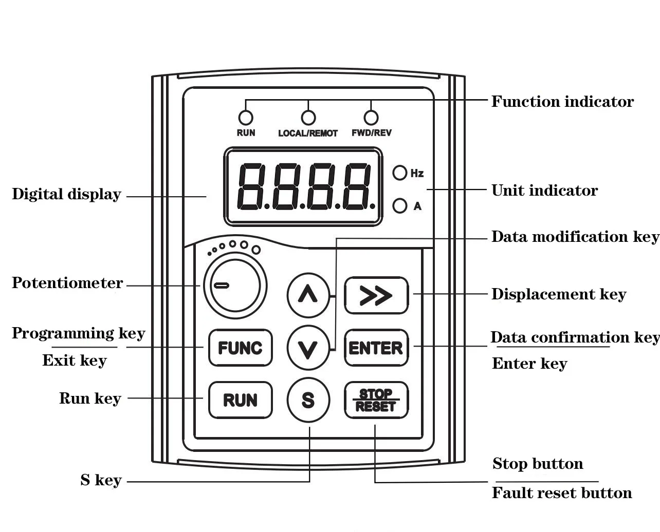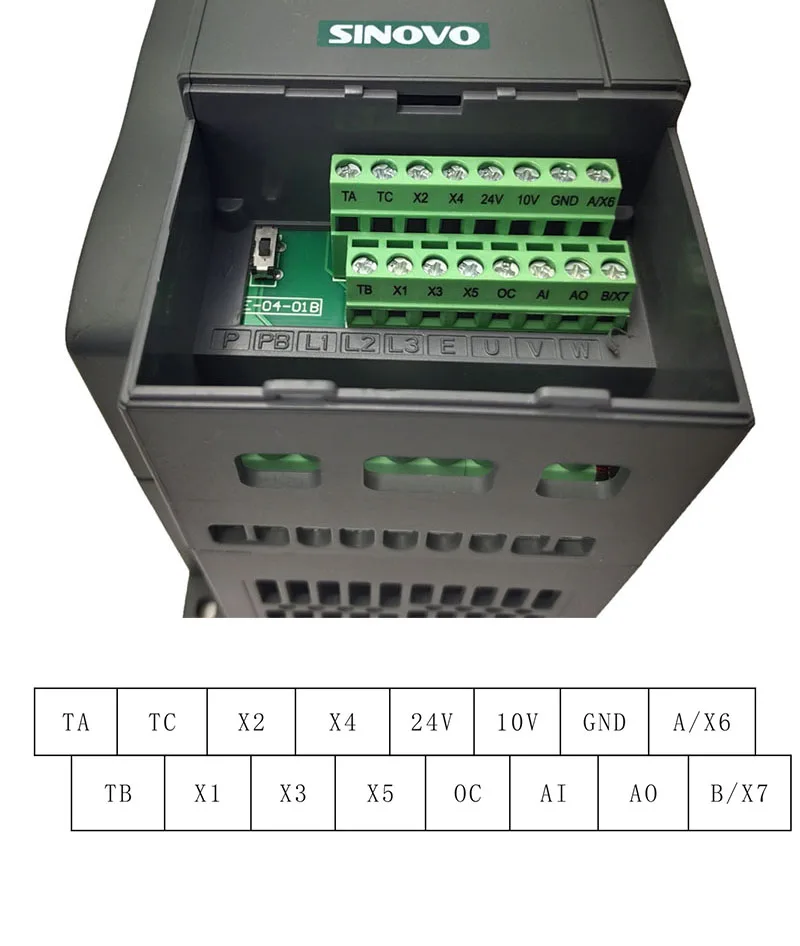 10 В-GND внешний + 10 в источник питания обычно используется в качестве источника питания для внешнего потенциометра. Диапазон сопротивления потенциометра-1 ~ 5kΩ 24V-GND внешний + 24В источник питания обеспечивает + 24 источника питания, который обычно используется в качестве источника питания для выходных терминалов открытого коллектора. Максимальный выходной ток: 50 мА Диапазон входного сигнала электрическая музыка: DC010V/ток: DC0 ~ 20 мА AI-GND аналоговый входной терминал Диапазон входного напряжения: постоянный ток 0-10 В/ток: DC0-20mA Выберите джемпер AI. При входном токе входное сопротивление составляет 500 Ω. X1-GND Многофункциональный входной терминал 1 X2-GND Многофункциональный входной терминал 2 X3-GND Многофункциональный входной терминал 3 X4-GND Многофункциональный входной терминал 4 Специфические функции многофункциональных входных терминалов задаются параметрами F3.00 ~ F3.04. Терминал и GND закрыты и эффективны. X5(DI)-GND Многофункциональный входной терминал 5 X5 терминал также используется в качестве импульсного терминала (DI), Максимальная Входная частота: 10 кГц A0-GND Диапазон выходного напряжения: 0 ~ 10 в Выход открытого коллектора OC функция вывода выбирается по параметру F4.01. Нормально закрытый терминал TA-TB TA-TC нормально открытый терминал Функция вывода выбирается по параметру F4.00. Емкость контактного привода: резистивная нагрузка контактная Емкость: AC250V 1A A B Стандартный интерфейс связи RS485 Машины серии SD80 не реализуют функцию связи через внешнюю карту связи, но полагаются на встроенные компоненты связи. Так как обычные машины серии SD80 не имеют внутренних компонентов связи, инверторы серии S с коммуникационными компонентами являются нестандартными продуктами и должны быть отмечены при заказе.