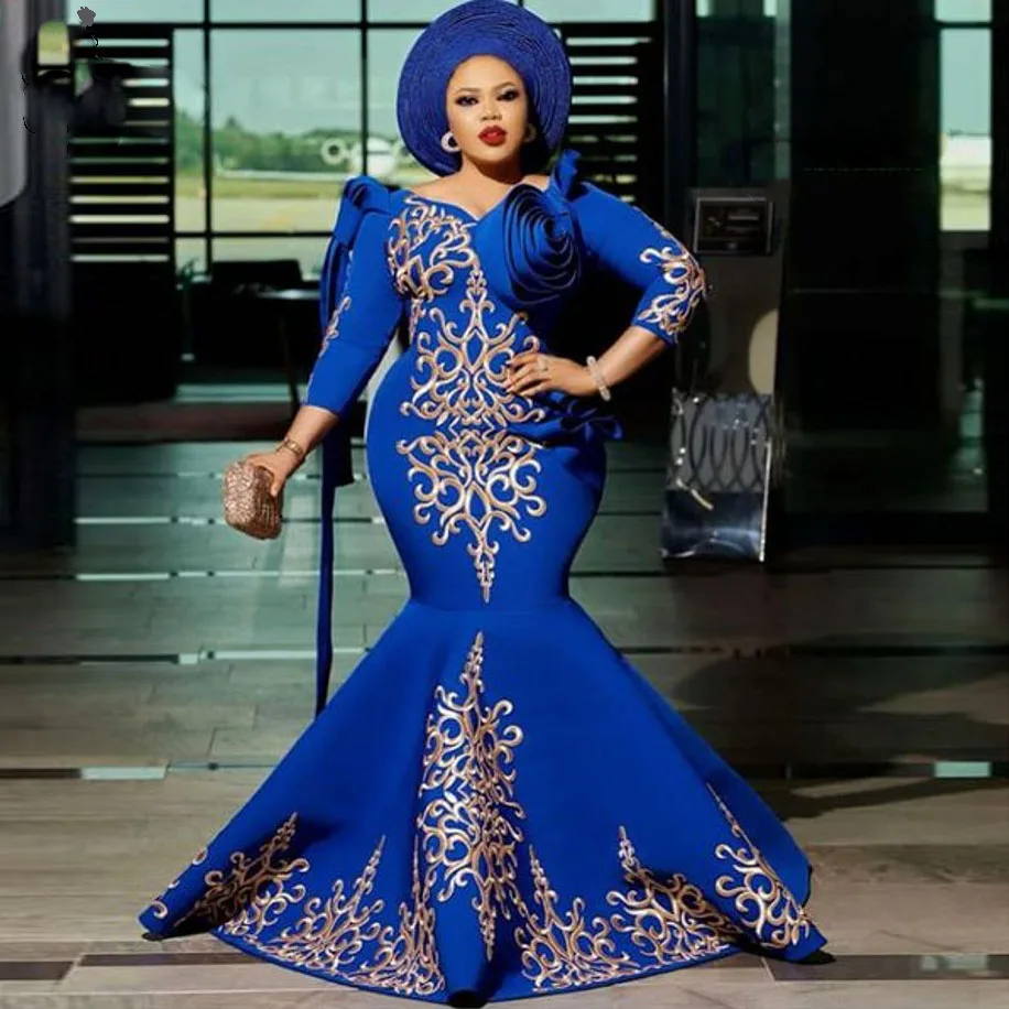 Женское вечернее платье с юбкой годе Aso Ebi, синее бархатное плать...