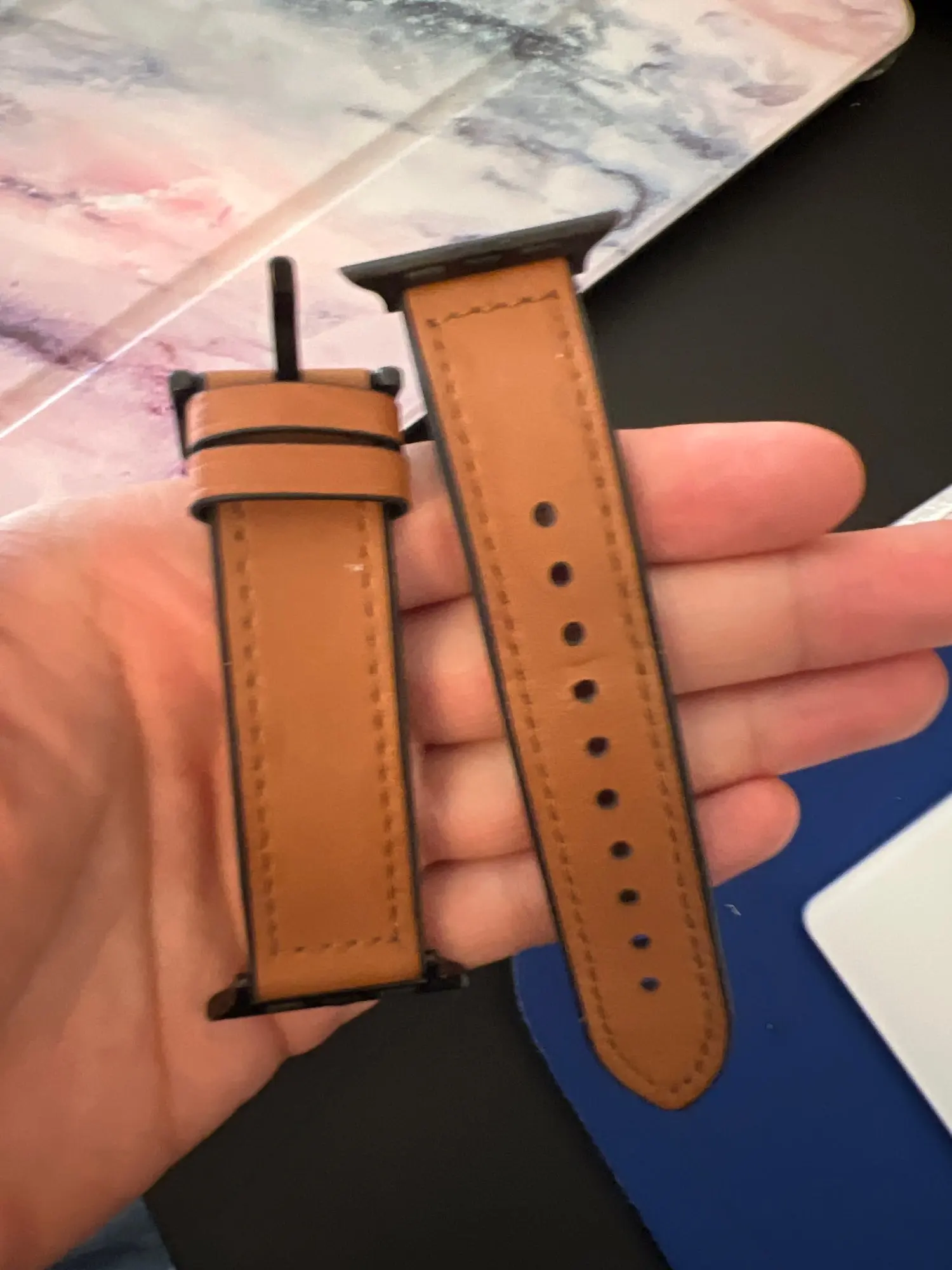 Посылка получена очень быстро, с другой стороны, браслет непригоден для использования, потому что он не блокируется на моих Apple Watch, поэтому браслет протекает без безопасности, и это просто невозможно