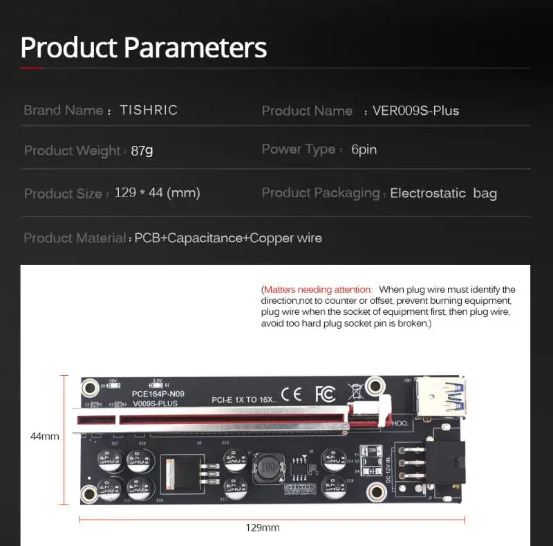 При заказе 1-10 штук VER009S плюс PCI E PCIE Riser 009s плюс стояк X16 6Pin USB3.0 кабель майнинга биткоинов Майнер Графика расширитель Riser карта