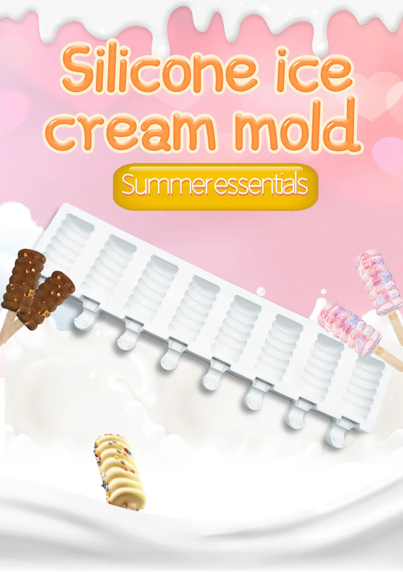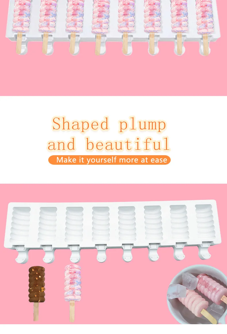 8 полостей, силиконовая форма для Фруктового мороженого на палочке, полосатые формы для мороженого, сделай сам, домашние Формы для мороженого с палочками эскимо