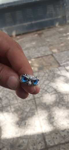 Кольцо унисекс, винтажное регулируемое с голубым глазом в виде совы...