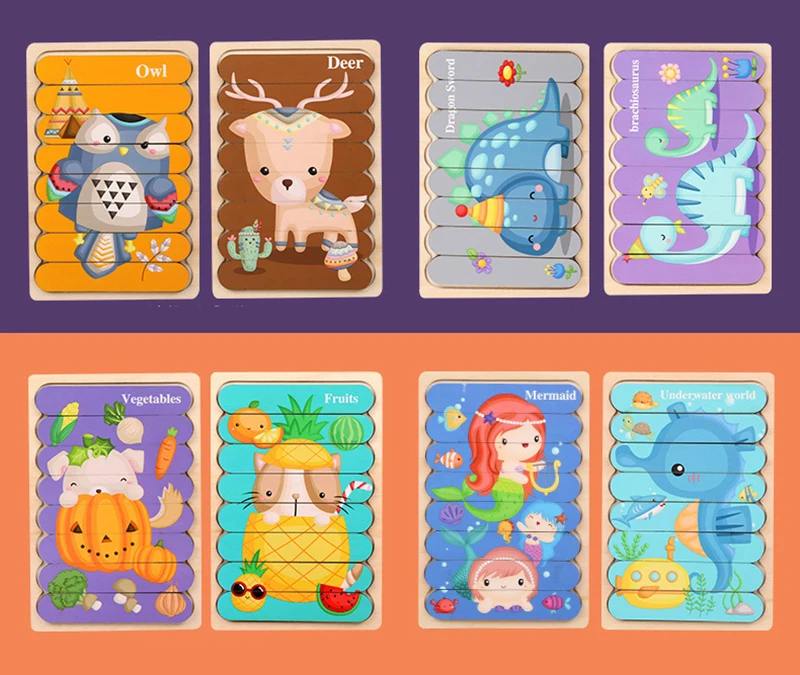Детские игрушки, Деревянный 3D пазл для детей, деревянные Мультяшные животные, головоломки, интеллектуальные Обучающие игрушки для детей, подарок