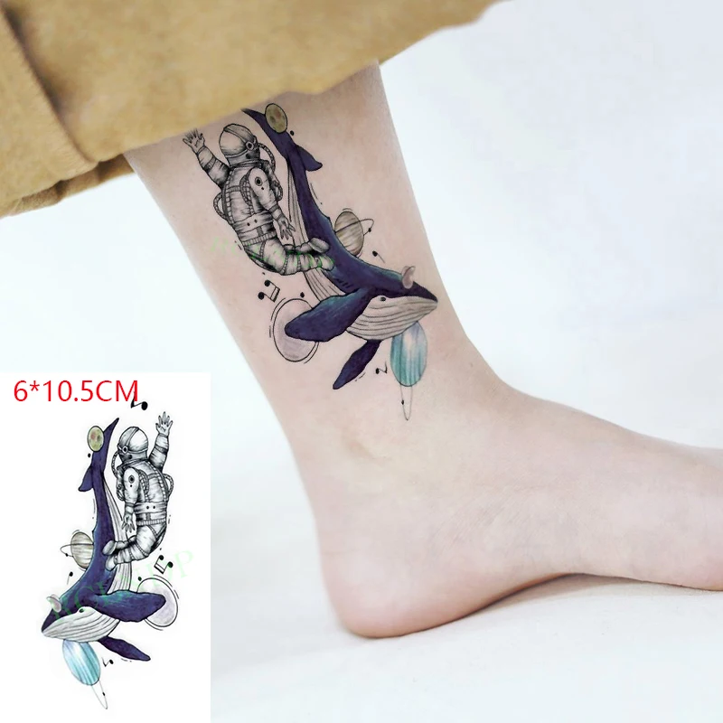 Водостойкая временная татуировка наклейка ins космонавт синий кит музыкальная нота боди-арт флеш-тату поддельные татуировки для женщин мужчин