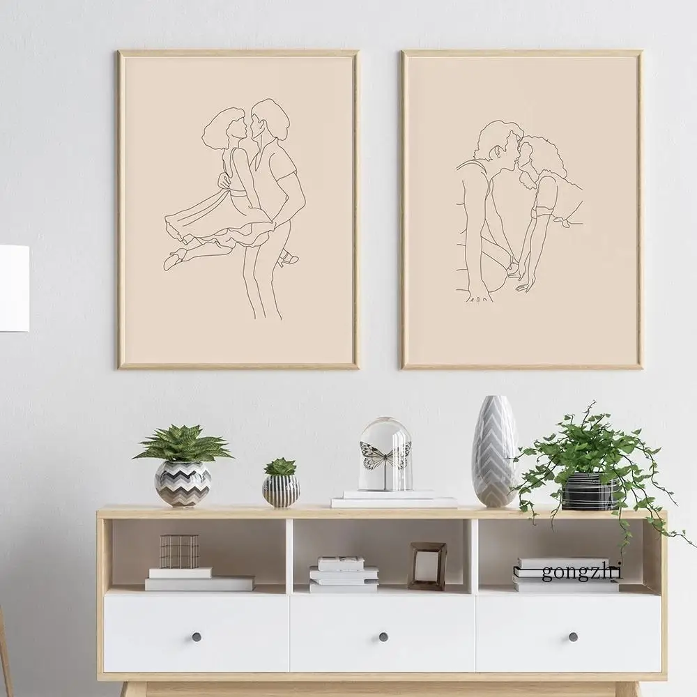 Постер криминальной художественной печати, Постер для рисования танцевальной линии, абстрактный минималистичный поцелуй для пары, настенное искусство, Картина на холсте, картины, домашний декор