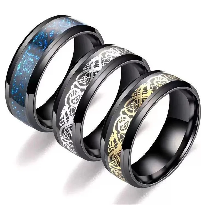Мужское кольцо из нержавеющей стали, Винтажное кольцо синего и черного цвета с драконом для мужчин, новинка, модные ювелирные изделия, аксессуары, подарки, тренд 2021