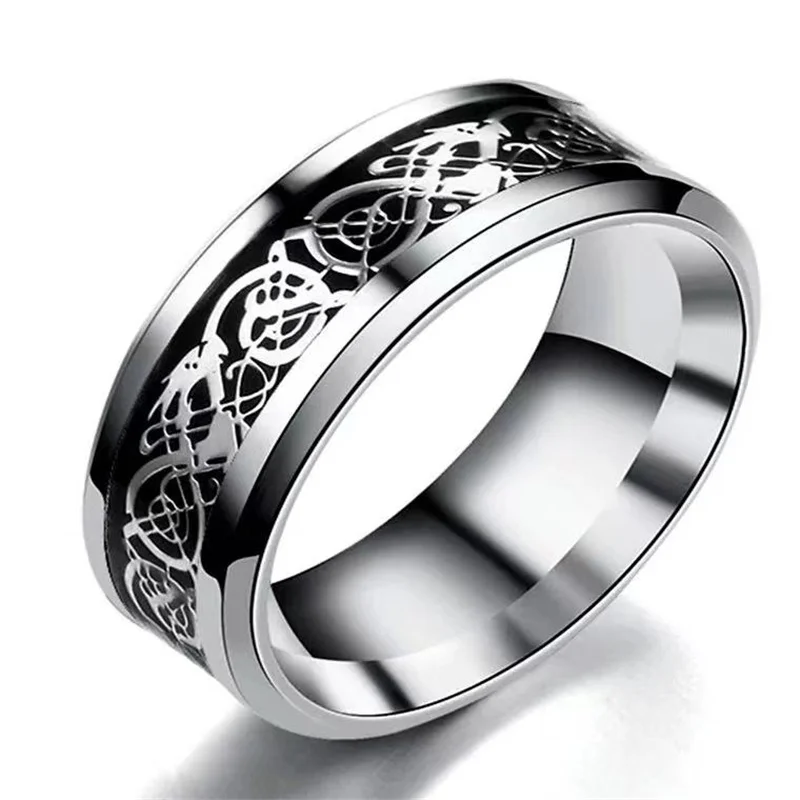 Кольца мужские из нержавеющей стали, шириной 8 мм, в ретро стиле