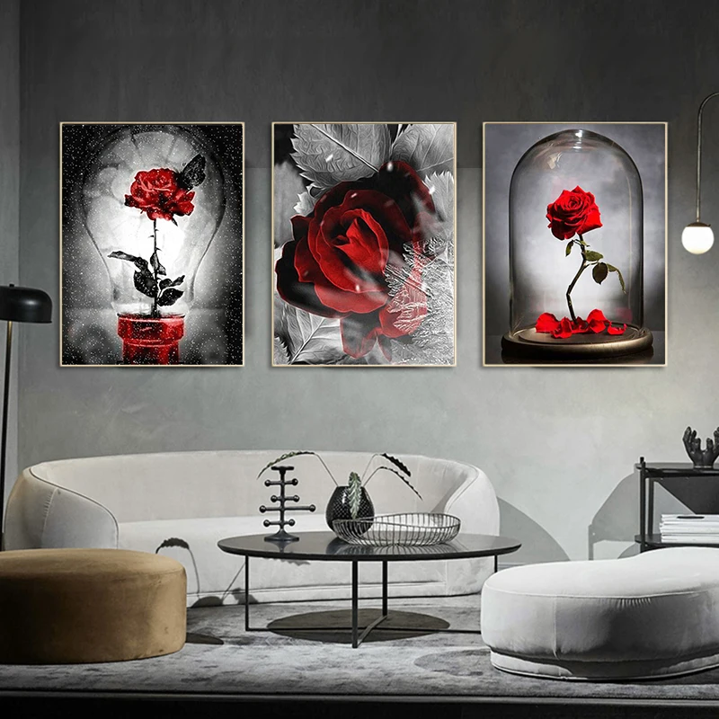 Набор для рисования по номерам на холсте, красные цветы в рамке