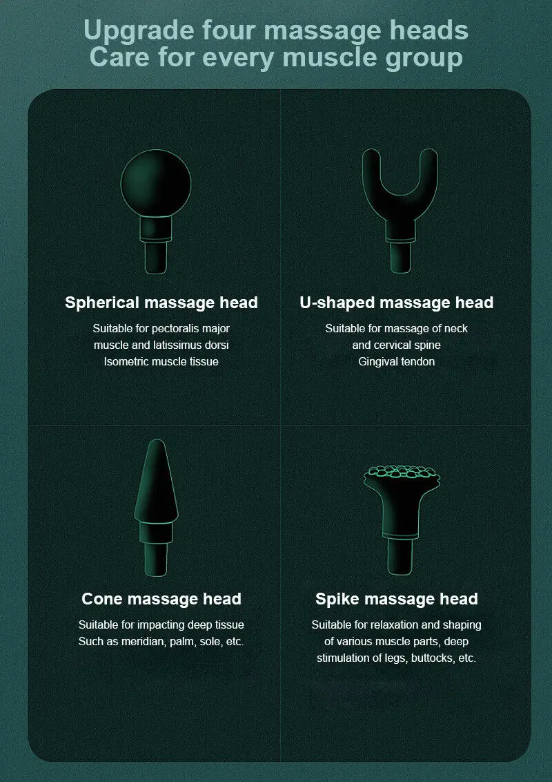【Профессиональный массаж gun】этот массажный пистолет предназначен для глубокого лечения мышц, восстановления и облегчения боли. Это помогает потребителям увеличить кровоток, быстрая рельефная мышца, облегчение фасции и узлов и делает ваше полное тело расслабленным. Независимо от того, являетесь ли вы заядлым спортсменом или просто страдаете от Мышечных болей, этот массажный пистолет сделает ваше тело более здоровым, стройным и безболезненным.【Оснащен 4 массажными головками и 6 регулируемыми скоростями 】 массажное устройство имеет 6 уровней скорости, что позволяет регулировать скорость, чтобы обеспечить правильное давление в соответствии с вашими потребностями. 4 массажные головки помогают пользователю расслабить все части тела.【Низкие децибелы и Улучшенная емкость аккумулятора 】с новейшей технологией снижения уровня шума, она обеспечивает бесшумную и интенсивную массу. 2000 мАч, литий-ионную перезаряжаемую батарею, обеспечивая до 3, 200 перкуссий в минуту. Работает до 7 часов в условиях полной зарядки.【Легкий дизайн с корпусом для переноски 】вы можете использовать мышечный массажный пистолет для расслабления и омоложения дома, в офисе, в тренажерном зале и даже во время путешествий. Если вы любите спорт, тренировки, любой другой вид спорта, это идеально. Идеально подходит для профессиональных спортсменов и занятий спортом.【Happy experience】массаж пистолет глубокая ткань также имеет отличную производительность в ежедневном массаже и обслуживании, расслабление жестких мышц. Он также подходит для спины и шеи офиса, вызванных малоподвижной работой. Вы можете выбрать различный массаж, чтобы расслабиться, избавиться от усталости и пробудить жизненные силы мышц и дать вашему телу «зарядку».