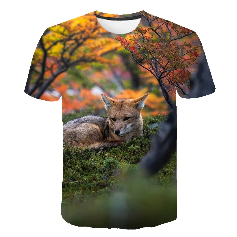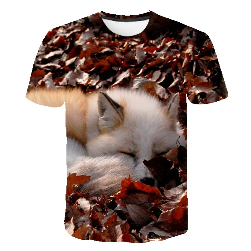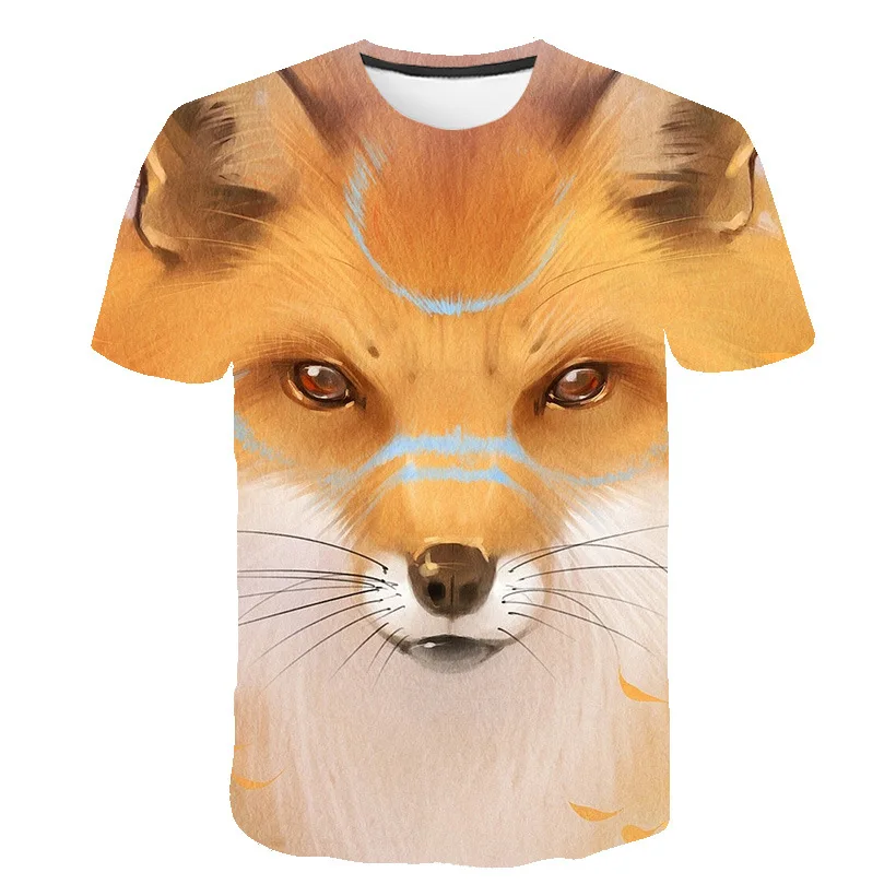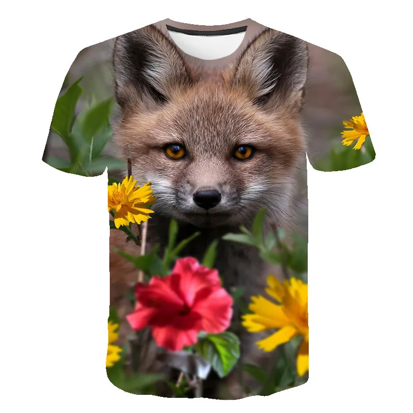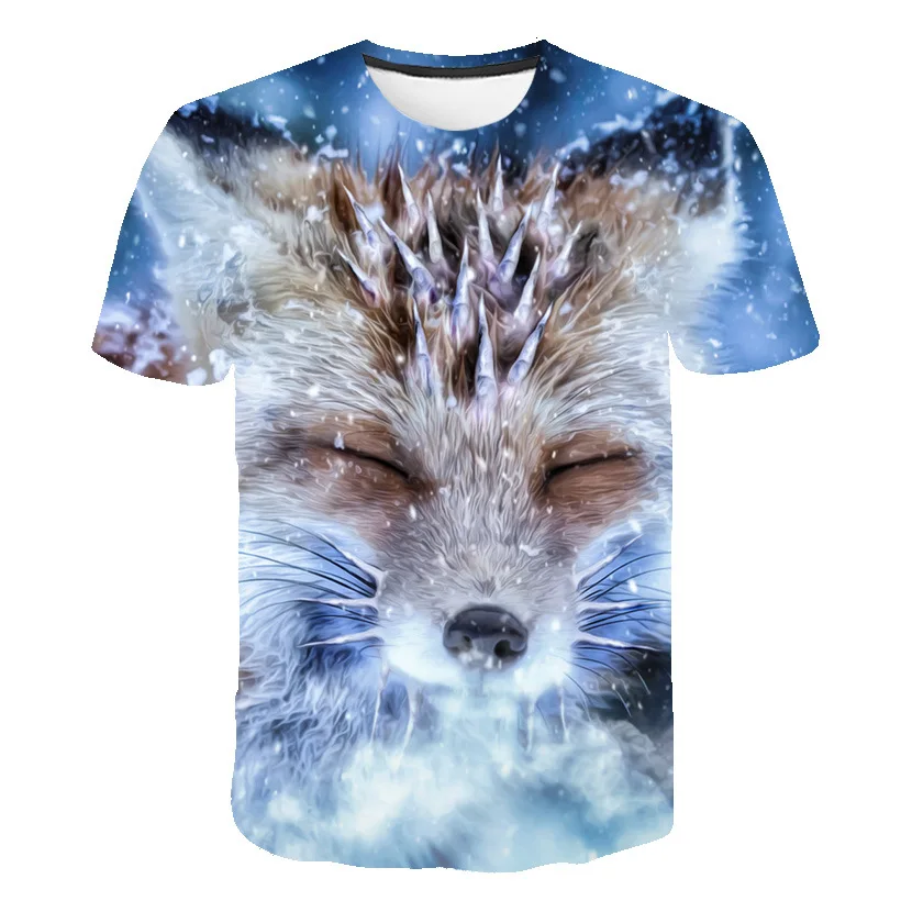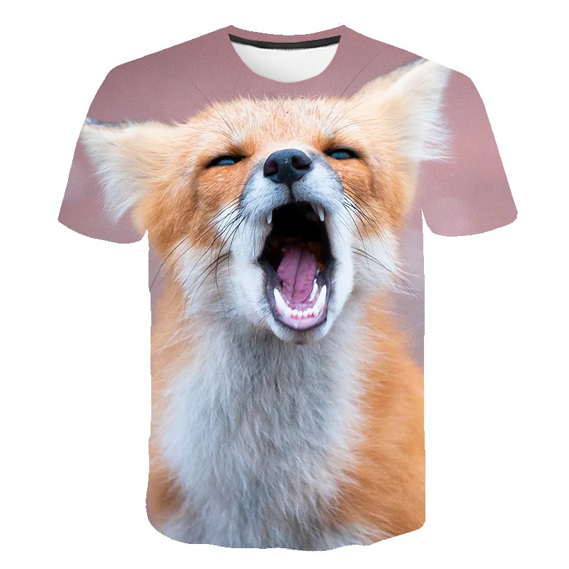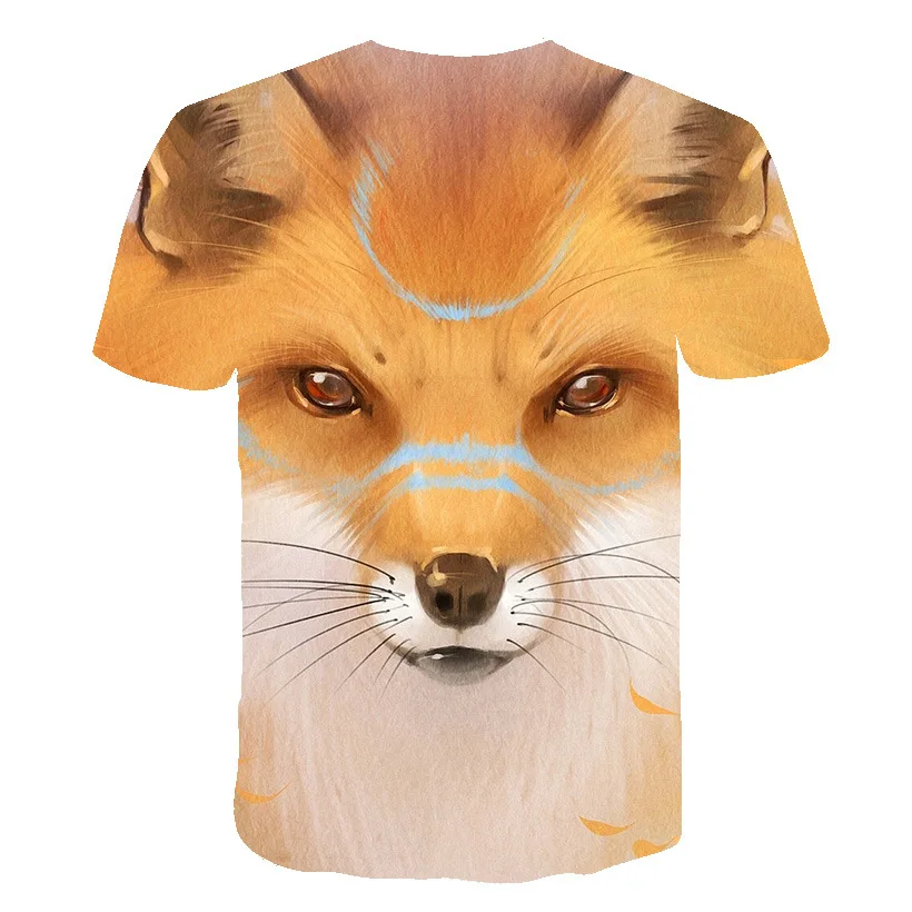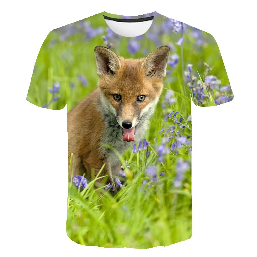 Новинка 2021, летняя футболка, одежда для девочек и мальчиков, детские 3D футболки, детская футболка с милыми животными, лисами, живыми, милыми забавными принтами, Детская футболка