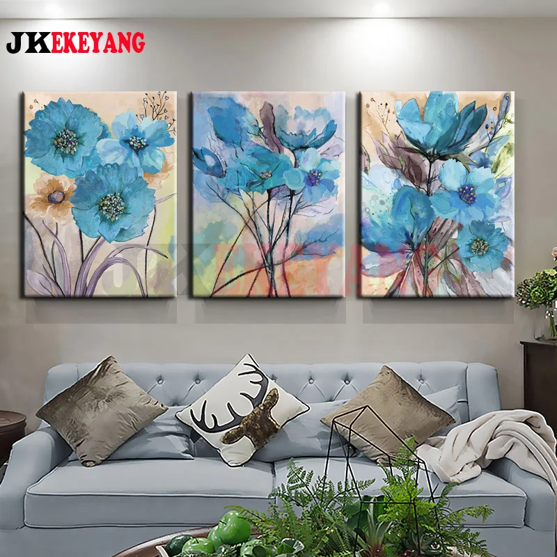 3 шт. 5D Diy круглый бриллиантквадратный алмаз Абстрактная живопись синий цветок Алмазная мозаика вышивка крестиком Y4319
