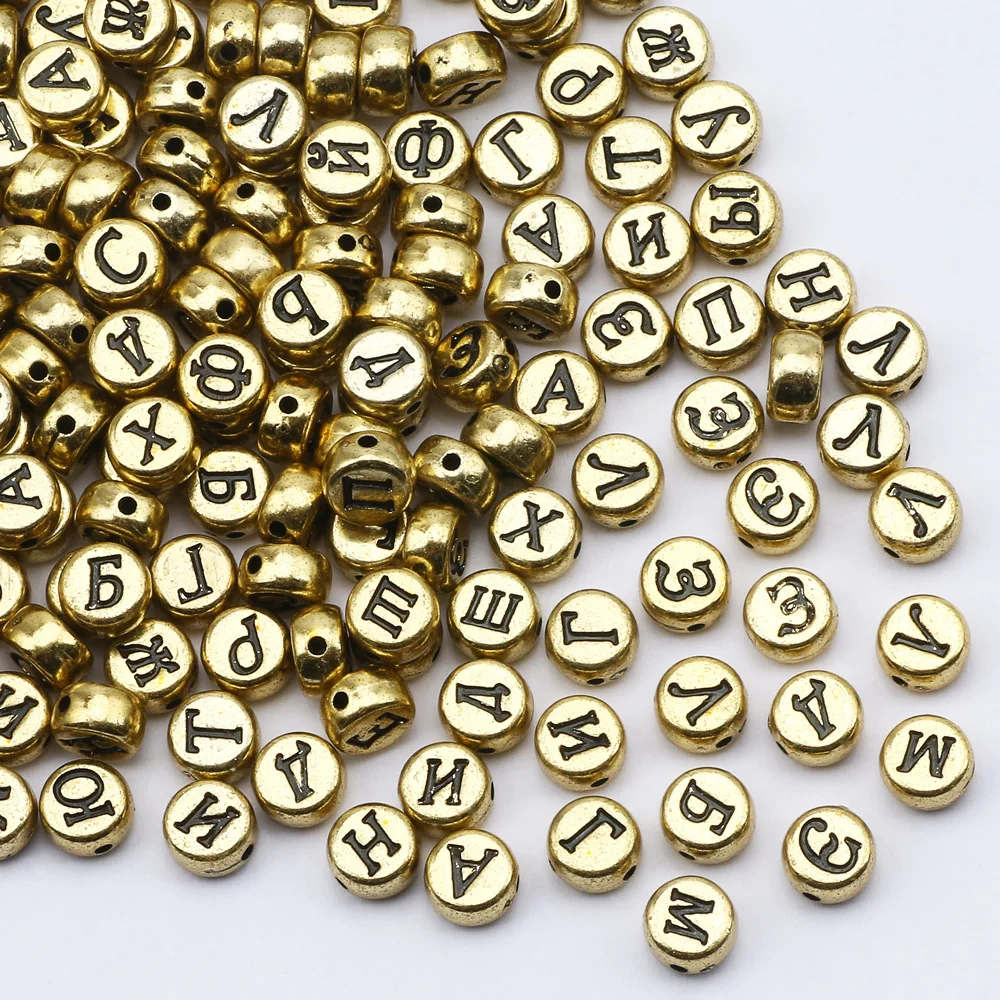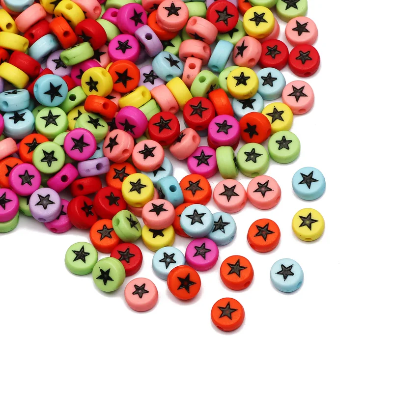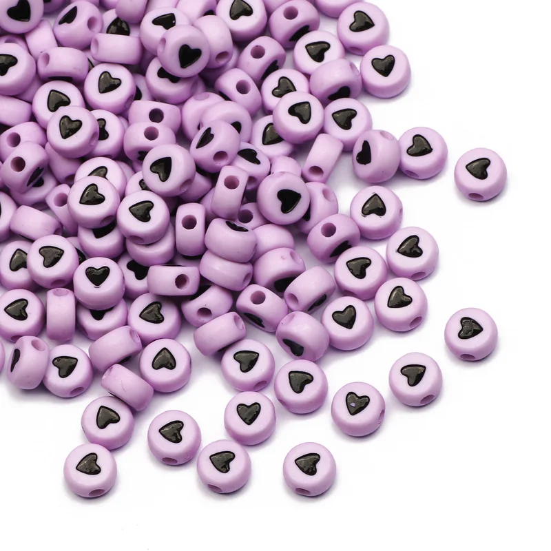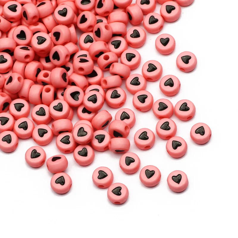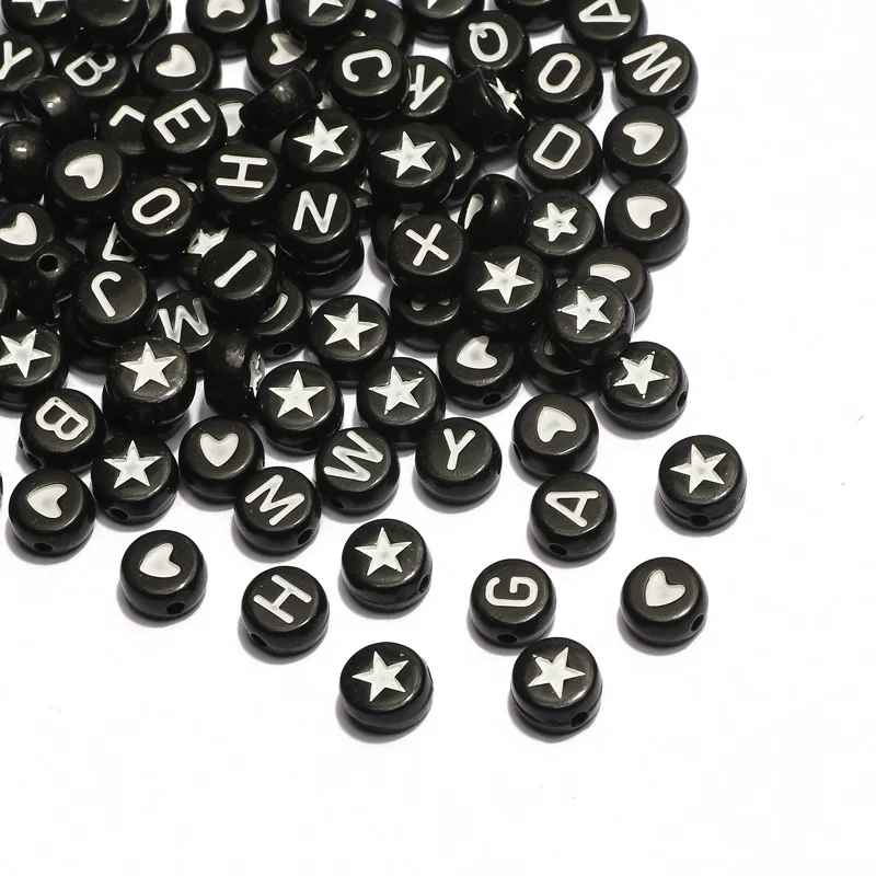 Бусины с отверстием для изготовления ювелирных изделий сделай сам, плоские Смешанные Буквы 7 мм, круглые акриловые бусины с сердцем, для изготовления браслетов, цепочек, 100200500 шт.