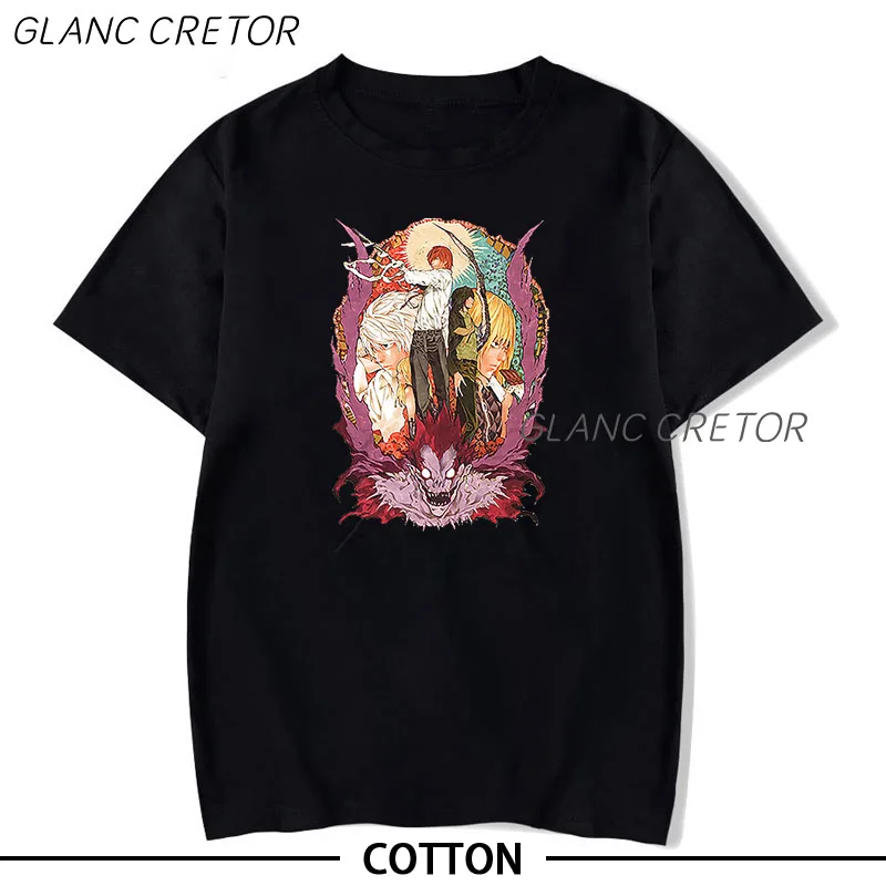 Короткая футболка с героями из японского аниме тетрадь смерти футболка для мужчин эстетическое обувь для косплея; Аниме футболка для мужчин, одежда с героями мультфильмов летняя футболка Harajuku футболки
