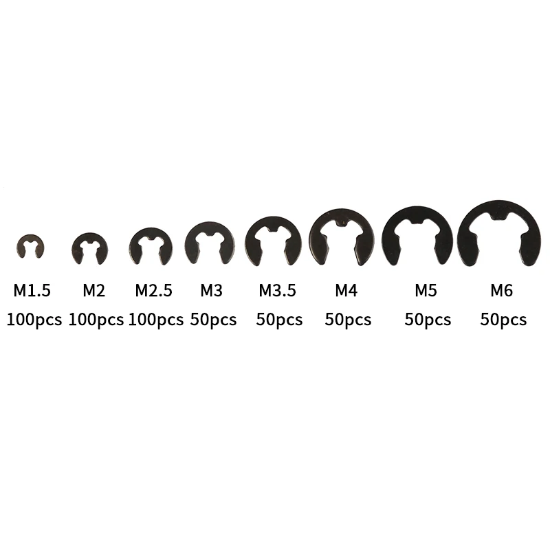 550pcs Электронный зажим Шайбы M1.5 M2 M2.5 M3 M3.5 M4 M5 M6 стопорное кольцо мешок пряжка фиксатора-образный Разделение шайбы комплект