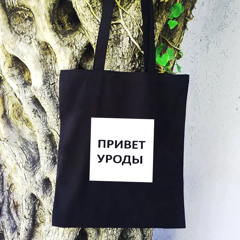 Женская сумка для покупок с принтом русских надписей, хлопковая Холщовая Сумка-тоут с пряжкой, женские черные сумки на плечо, сумка для покупок