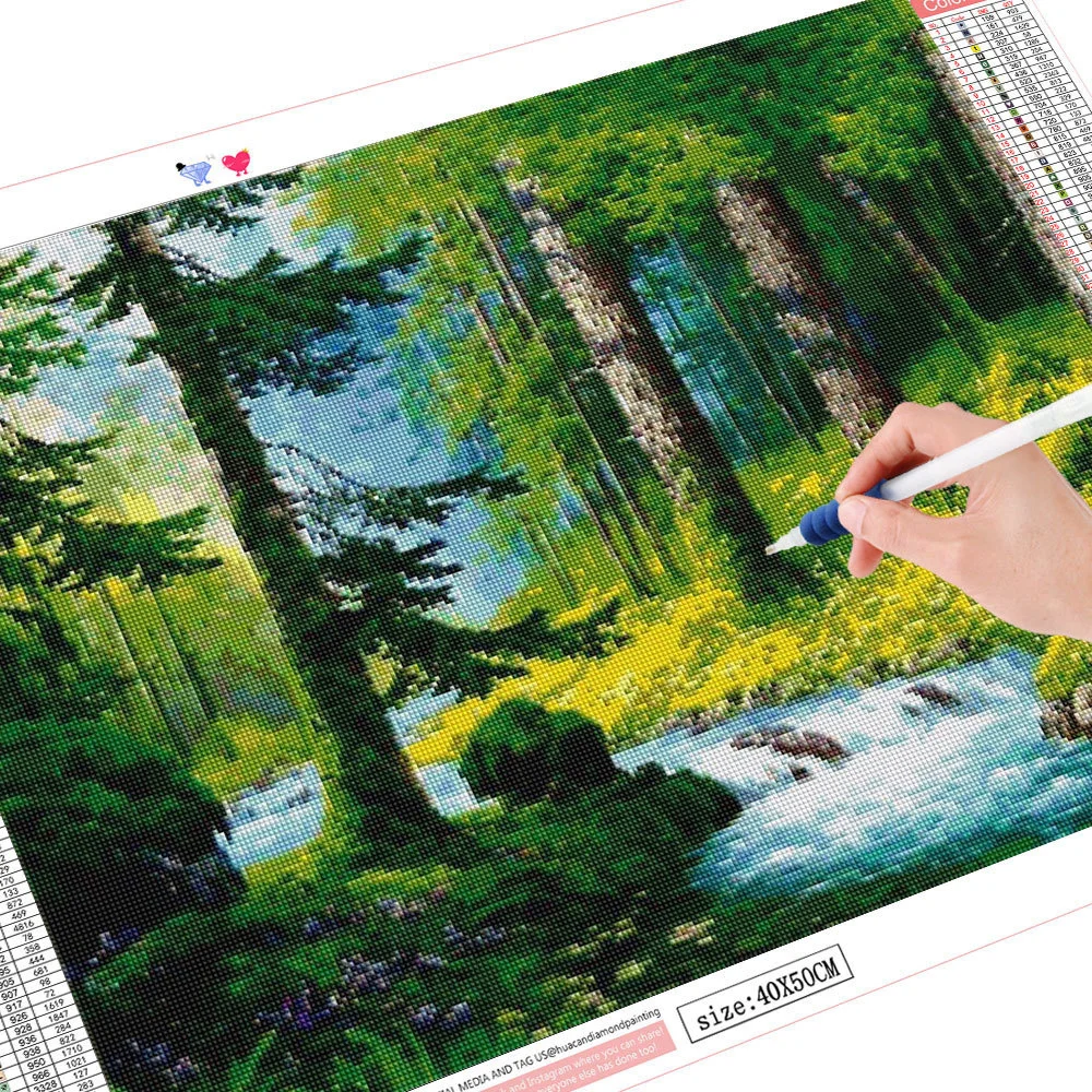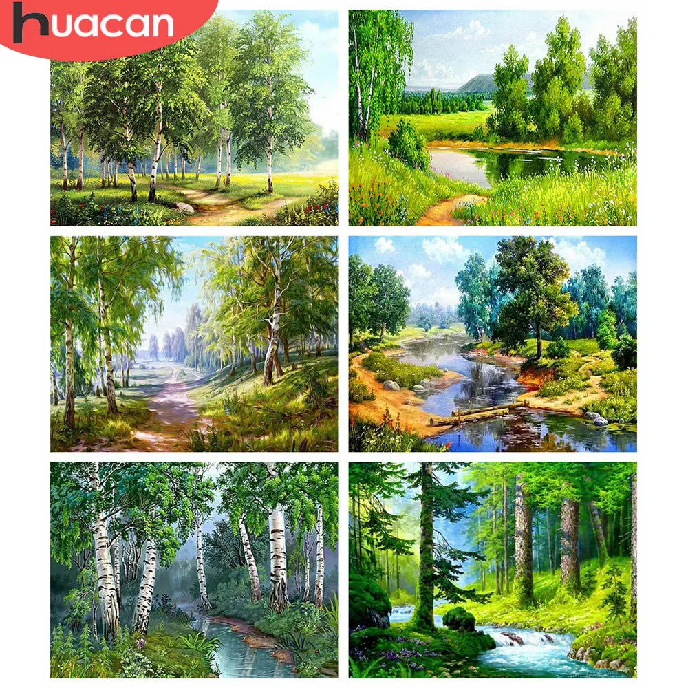 HUACAN полная квадратная алмазная живопись природа пейзаж DIY Бриллиантовая Вышивка Дерево 5d алмазная Мозаика Декор для дома с лесным пейзажем набор для рукоделия