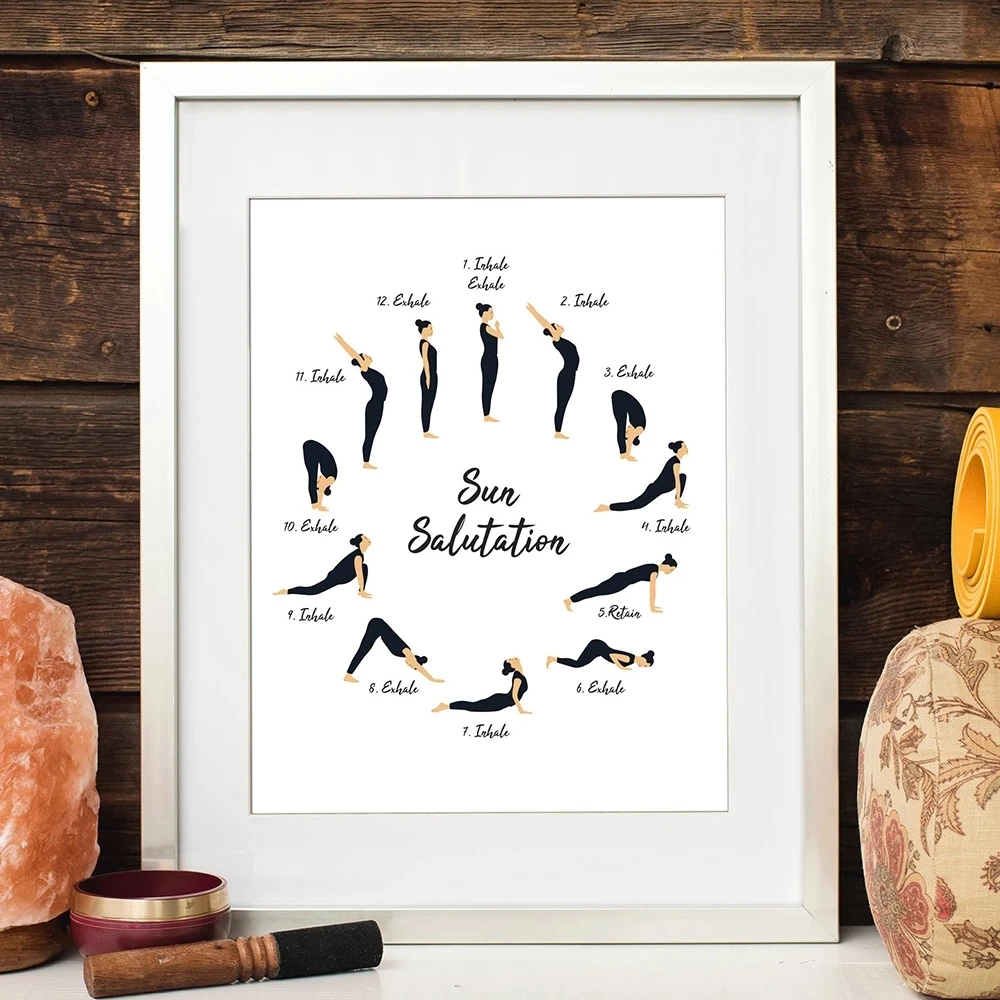 Плакаты для йоги, солнца, здоровья, аэробные упражнения, холст, живопись и принты, черные, белые настенные картины для гостиной, домашний декор