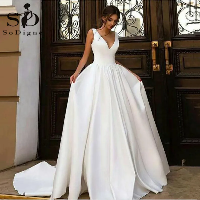 Атласное Бальное Платье soworthy, простое кружевное свадебное плать...