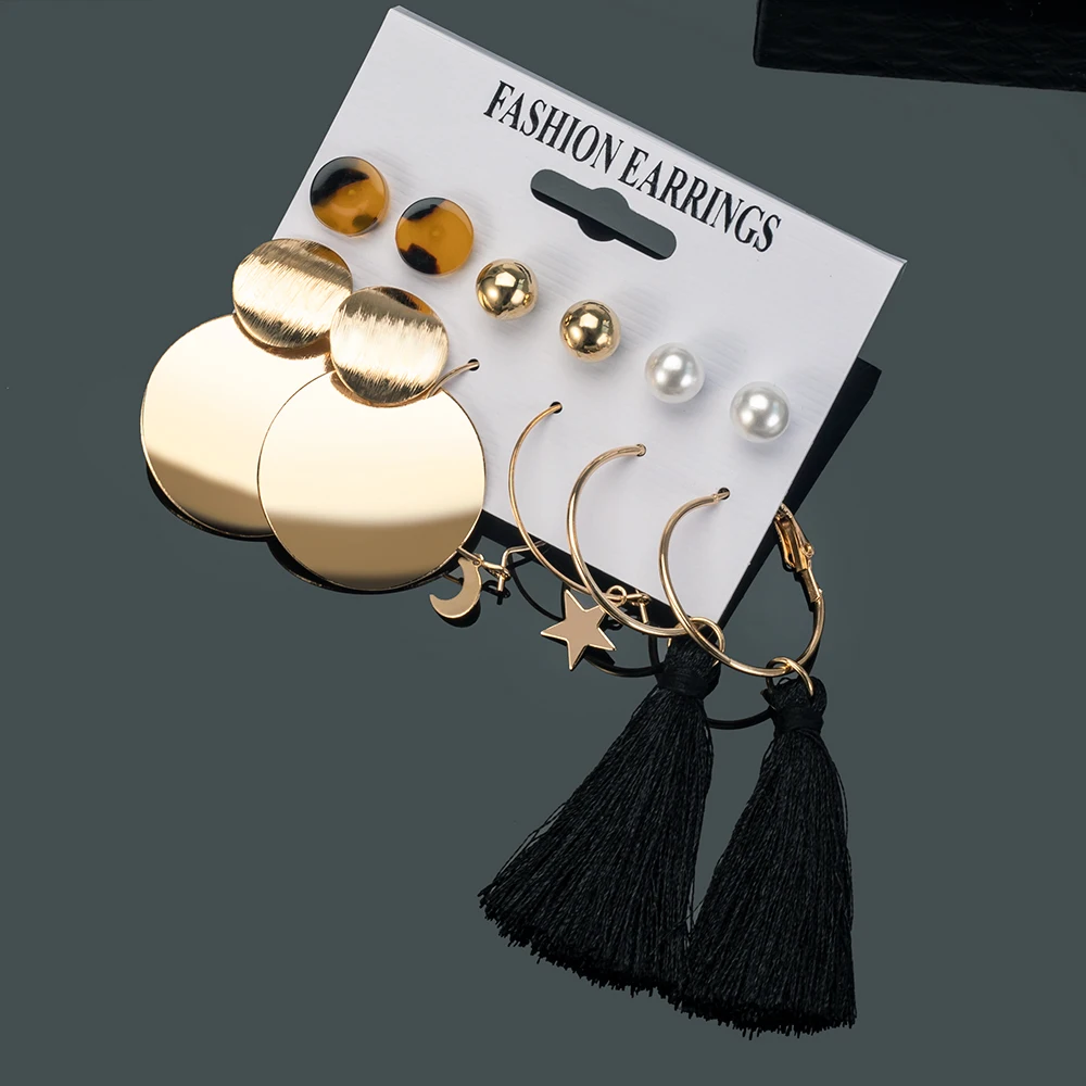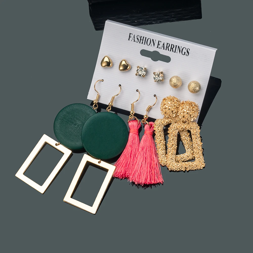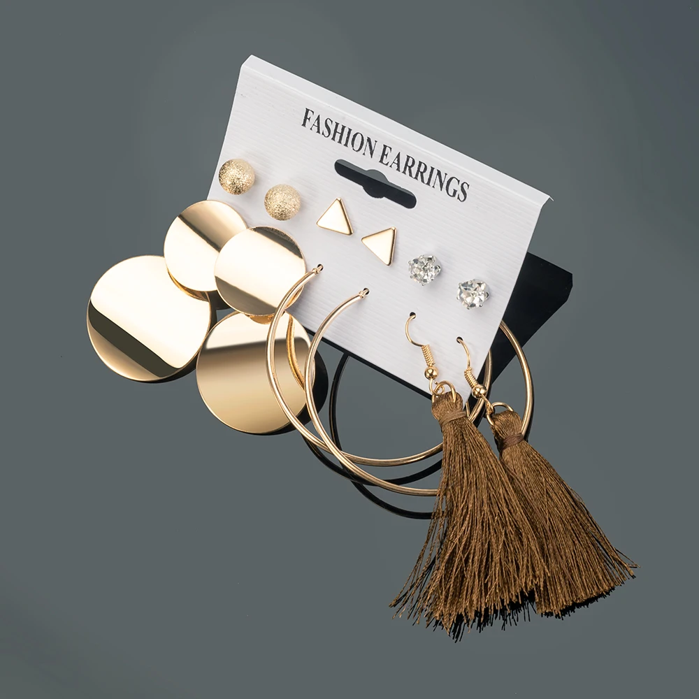 Набор сережек с кисточками для женщин, комплект из 6 пар геометриче...