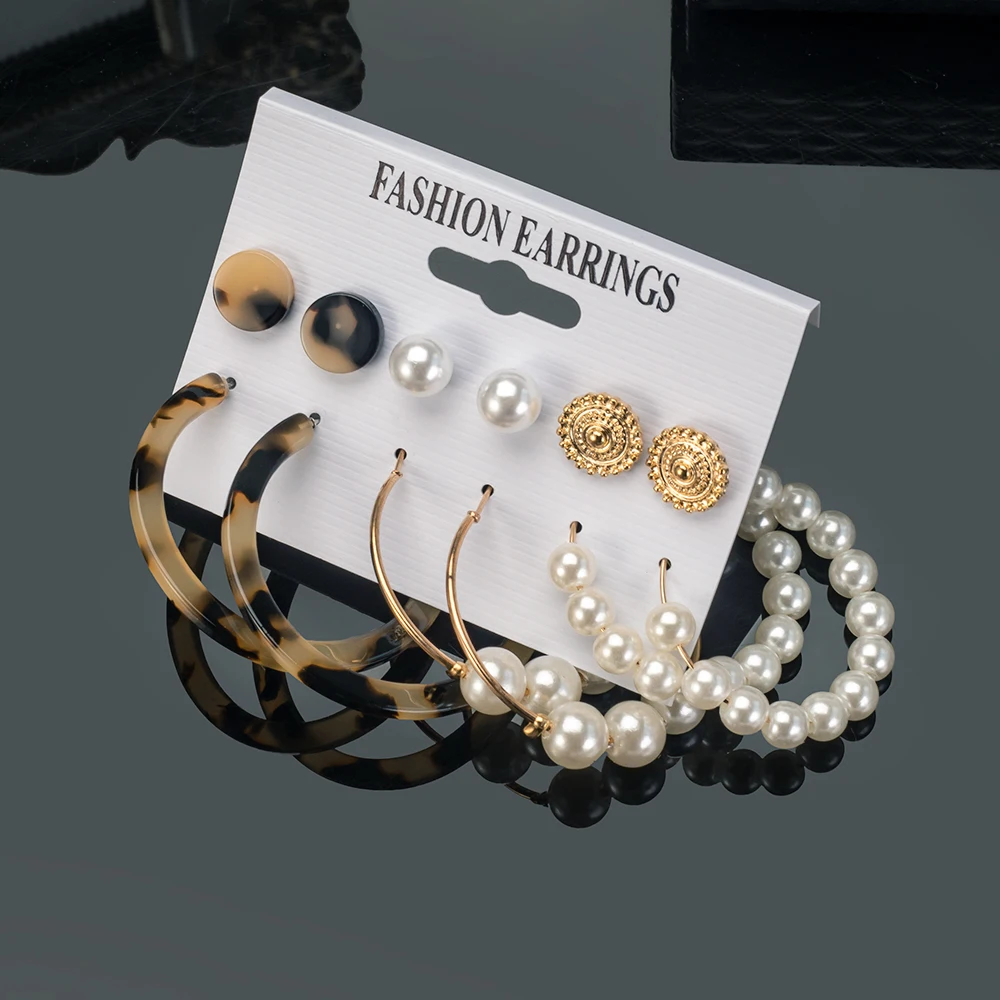 Набор акриловых серег с жемчугом для женщин, серьги-гвоздики в боге...