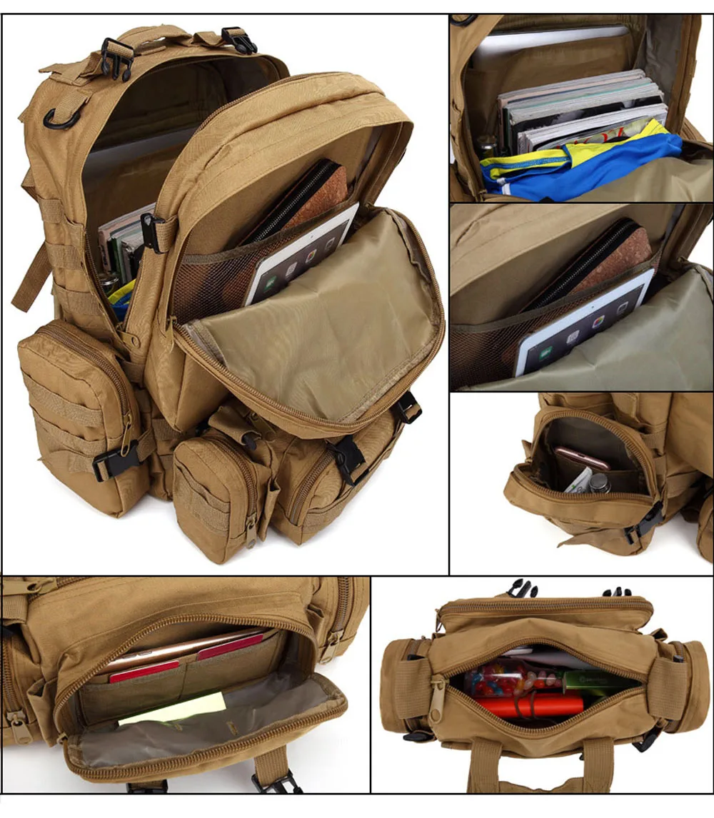 Тактические рюкзаки, 50 л, мужской военный рюкзак 4 в 1, тактическая сумка с функцией Молле для походов, альпинизма, армейский рюкзак, сумка для кемпинга