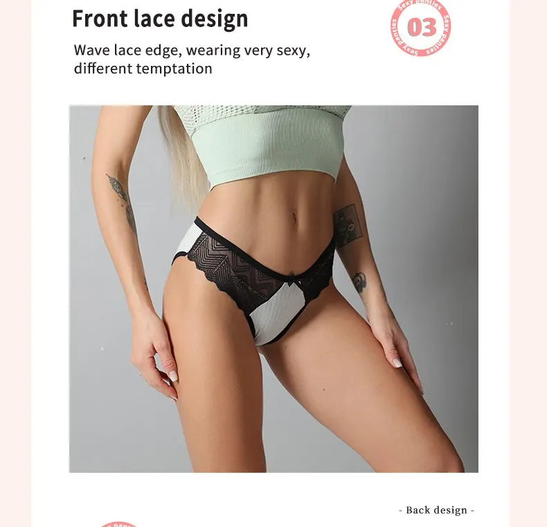 Модные женские кружевные трусики, хлопковые сексуальные женские тру...