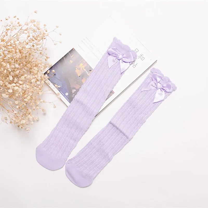 Летние сетчатые носки для маленьких девочек, милые Гольфы принцессы с бантом для новорожденных, мягкие эластичные тонкие длинные носки для малышей 0-3 лет