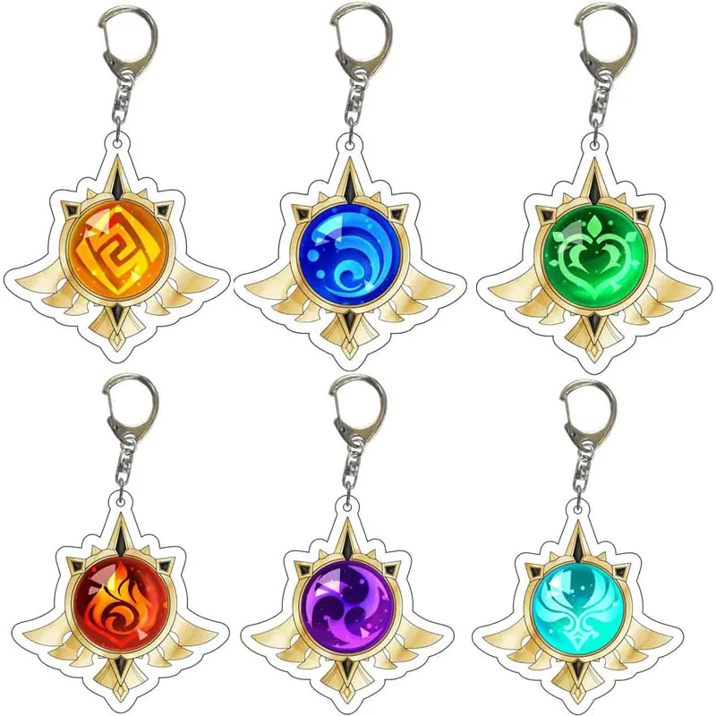 Брелок Game Genshin Impact, 7 элементов, подвесной ключ ювелирные Кольца Подарочные