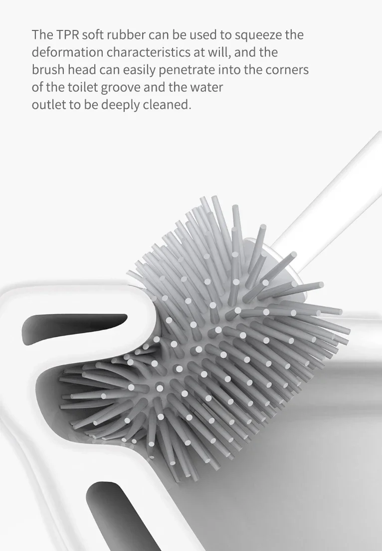 • Ершик для унитаза изготовлен из высококачественной мягкой резины TPR. • Легко моется, не вырабатывается статическое электричество, и волосы нелегко зацепить. • Мягкие щетинки очень гибкие, не выпадают волосы, имеют длительный срок службы. • Устойчивое Основание, Основа щетки унитаза изготовлена из высококачественного PP пластика, экологически чистого и без запаха, диаметром около 100 мм, удобного хранения и экономии места.