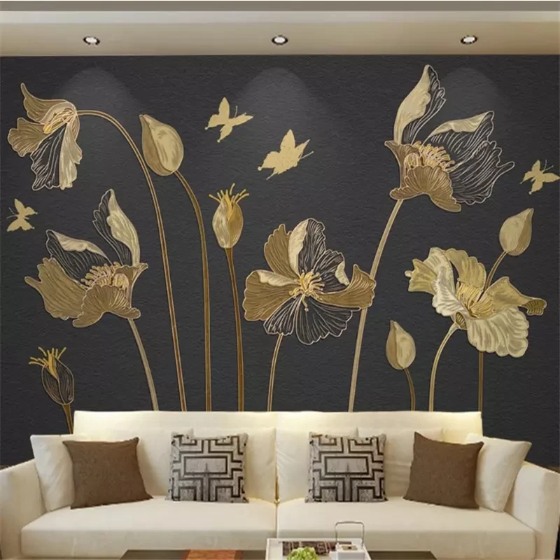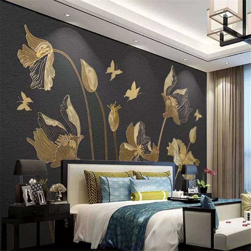 Самоклеящиеся обои 3d красивые европейские цветы Бабочка Золотой диван фон для спальни водонепроницаемый фон