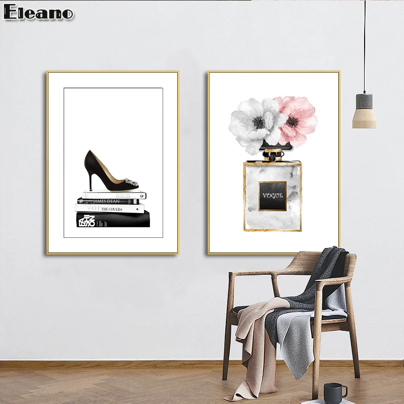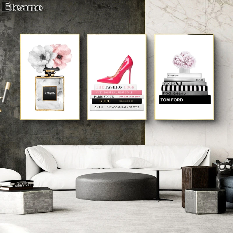 Книги и розовые высокие каблуки, Постер, искусственная Картина на холсте, пользовательская печать, Роскошный декор для стен гостиной, картина