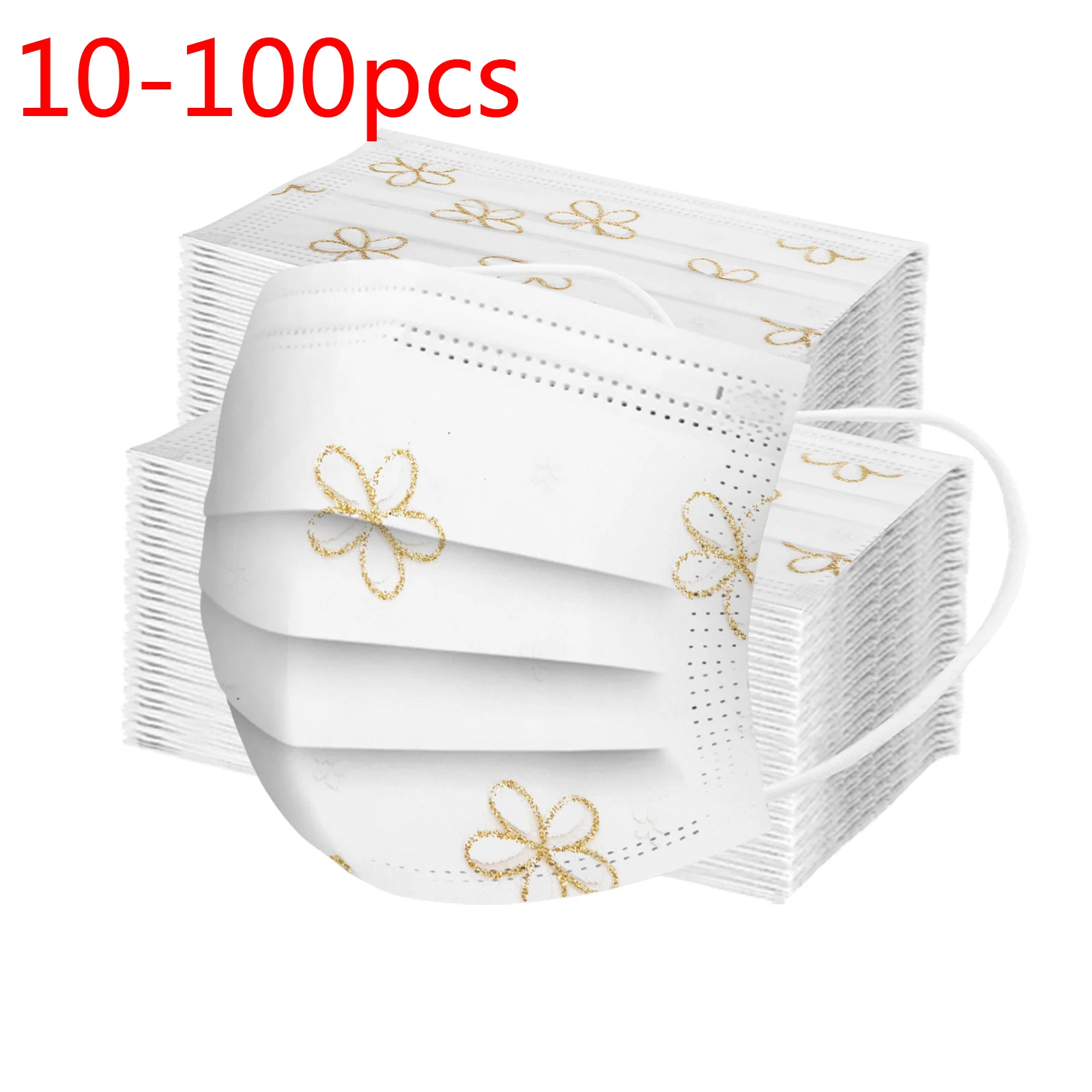 Маски одноразовые с цветочным принтом унисекс, 3-слойные, для лица,...