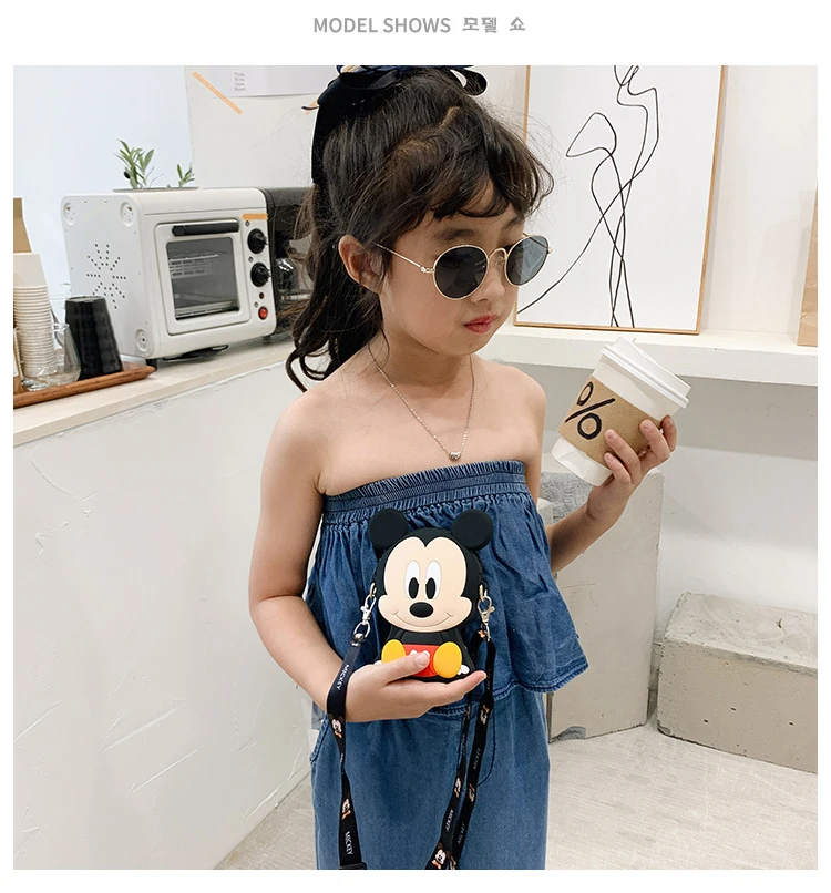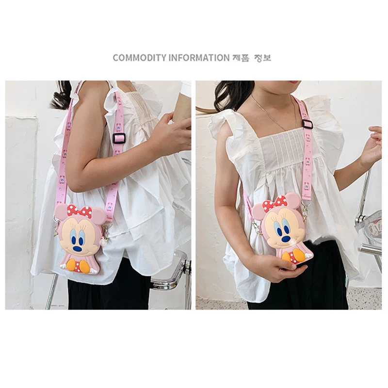 Детская силиконовая мини-сумка с мультипликационным изображением Микки и Минни Диснея, сумка-мессенджер для девочек, мобильный телефон