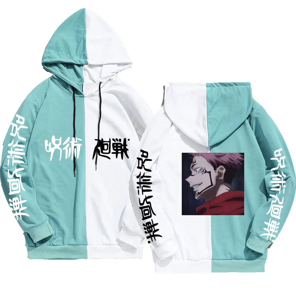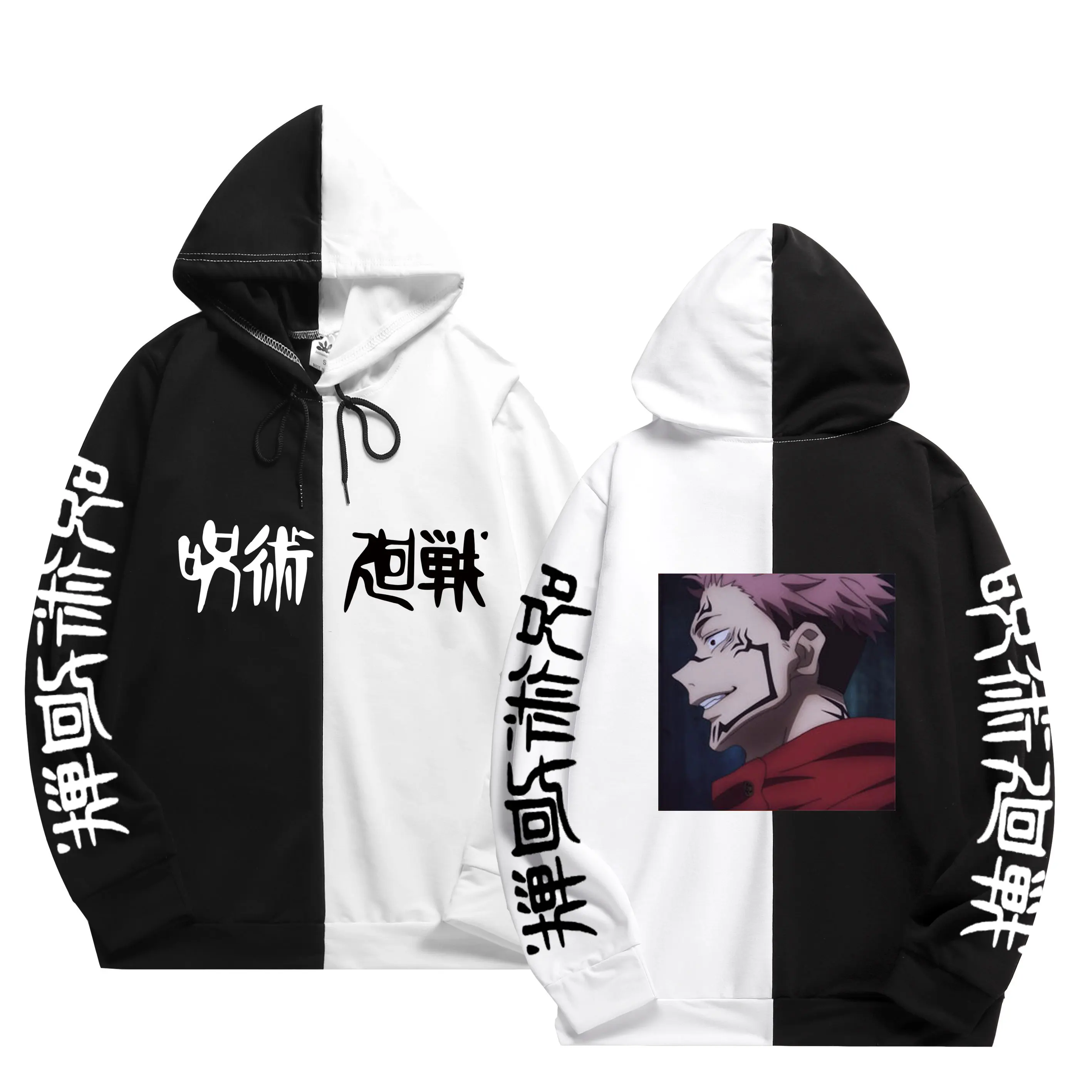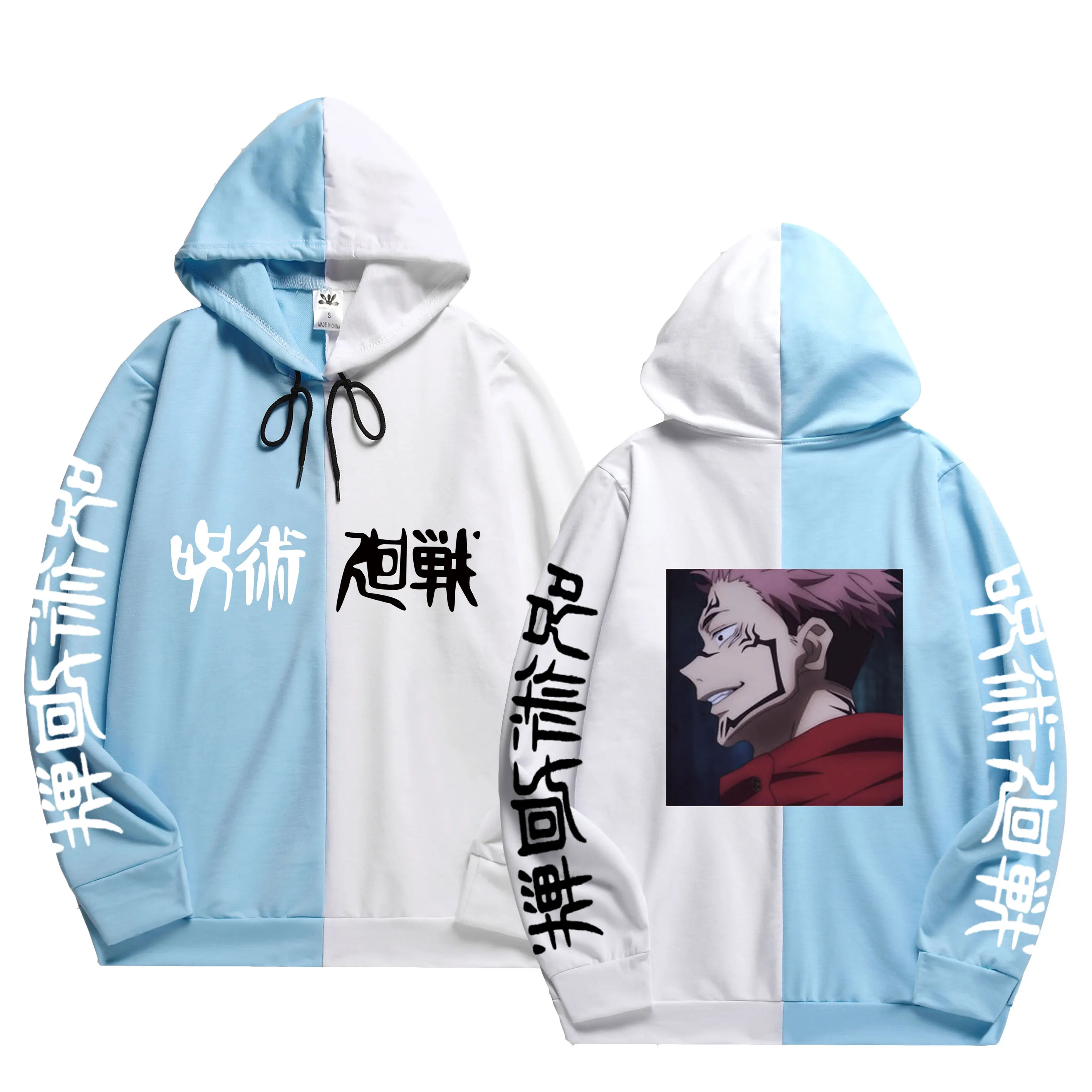 Толстовка мужская с японским аниме, тонкая фуфайка с капюшоном, с принтом Шаринган, в стиле пэчворк, юдзюсу кайсен, юцзи итадори, летняя одежда