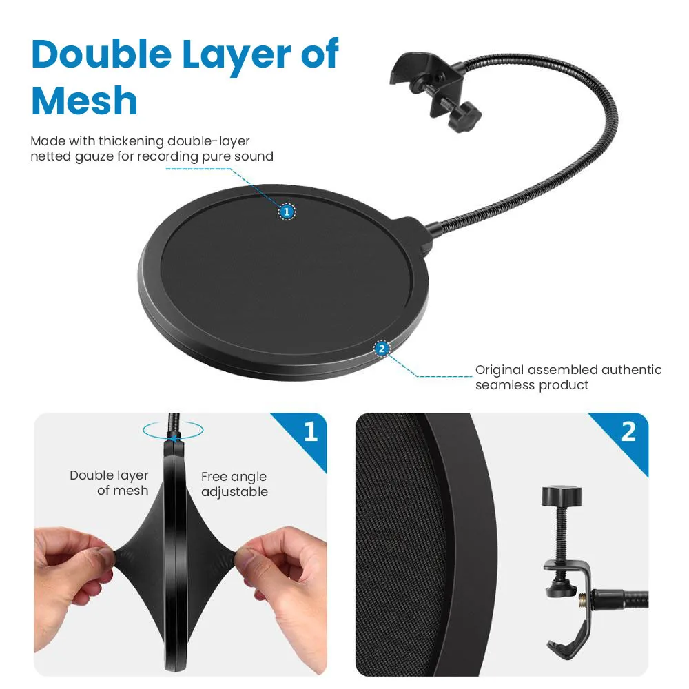 Двухслойный Студийный микрофон, гибкий звуковой фильтр с ветровым экраном для трансляции, караоке, youtube, микрофон, аксессуары для записи подкастов
