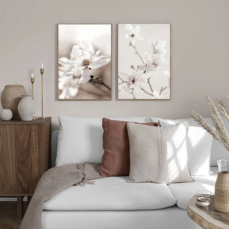Привлекательные фотообои и разноцветные абстрактные картины на холс...