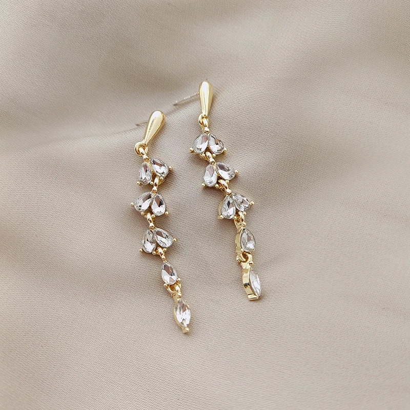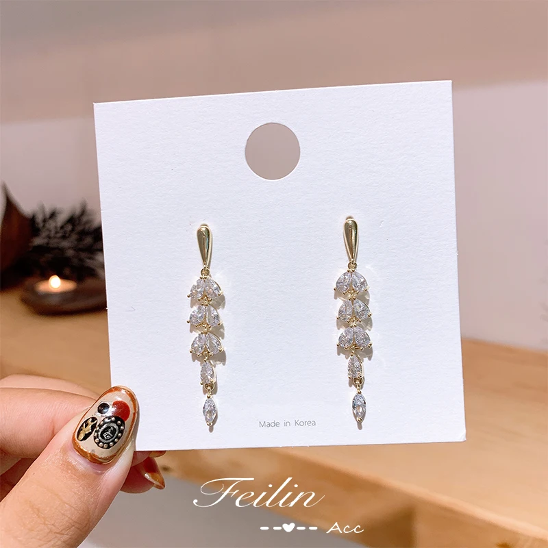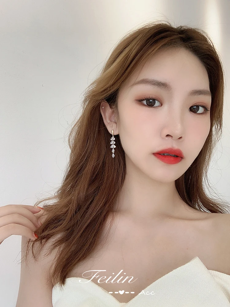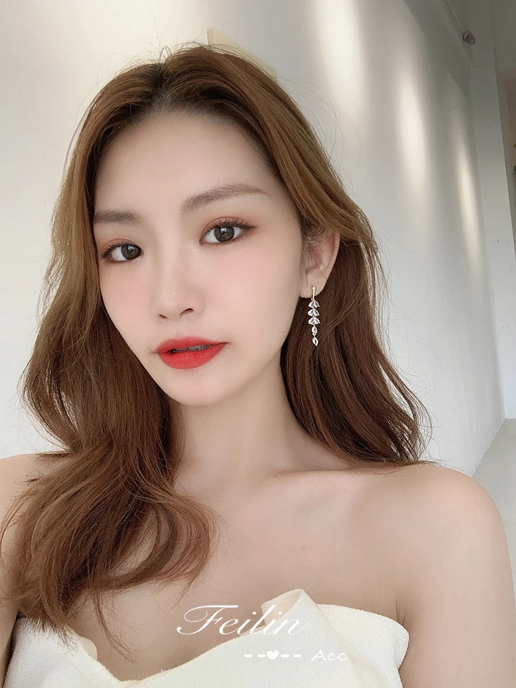 Серьги-гвоздики длинные из серебра Корейская лампа пробы с цирконом, 2020