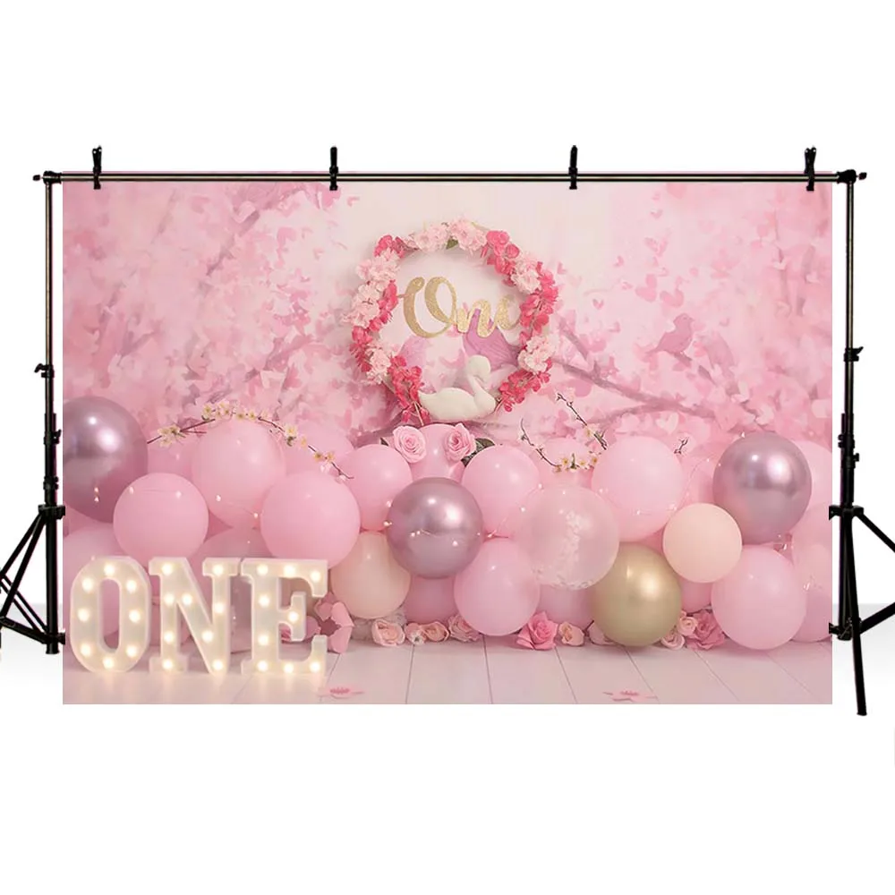 Фон для фотосъемки с изображением розовых и белых воздушных шаров