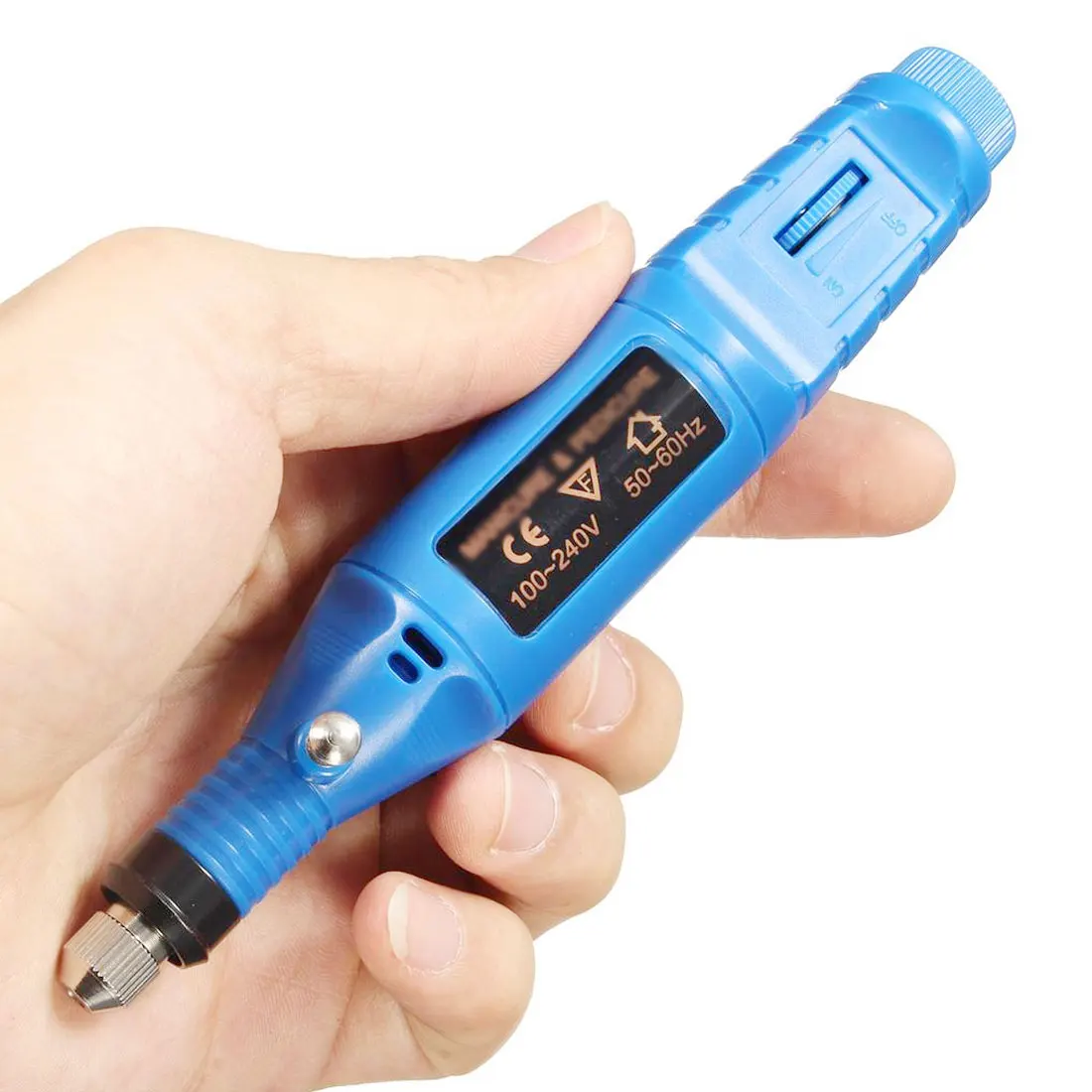 Спецификация: Материал: пластик Скорость: 3000-15000 об/мин Цвет: розовый, белый, черный, зеленый, синий Размер: около 160*24 мм Режим электропитания: штепсельная вилка европейского стандарта Напряжение: 100 В ~ 240 В 50 Гц В том числе: шлифовальный станок хост * 1, шлифовальная игла 6 шт. в комплекте * 1, Вилка питания * 1, руководство на английском языке * 1