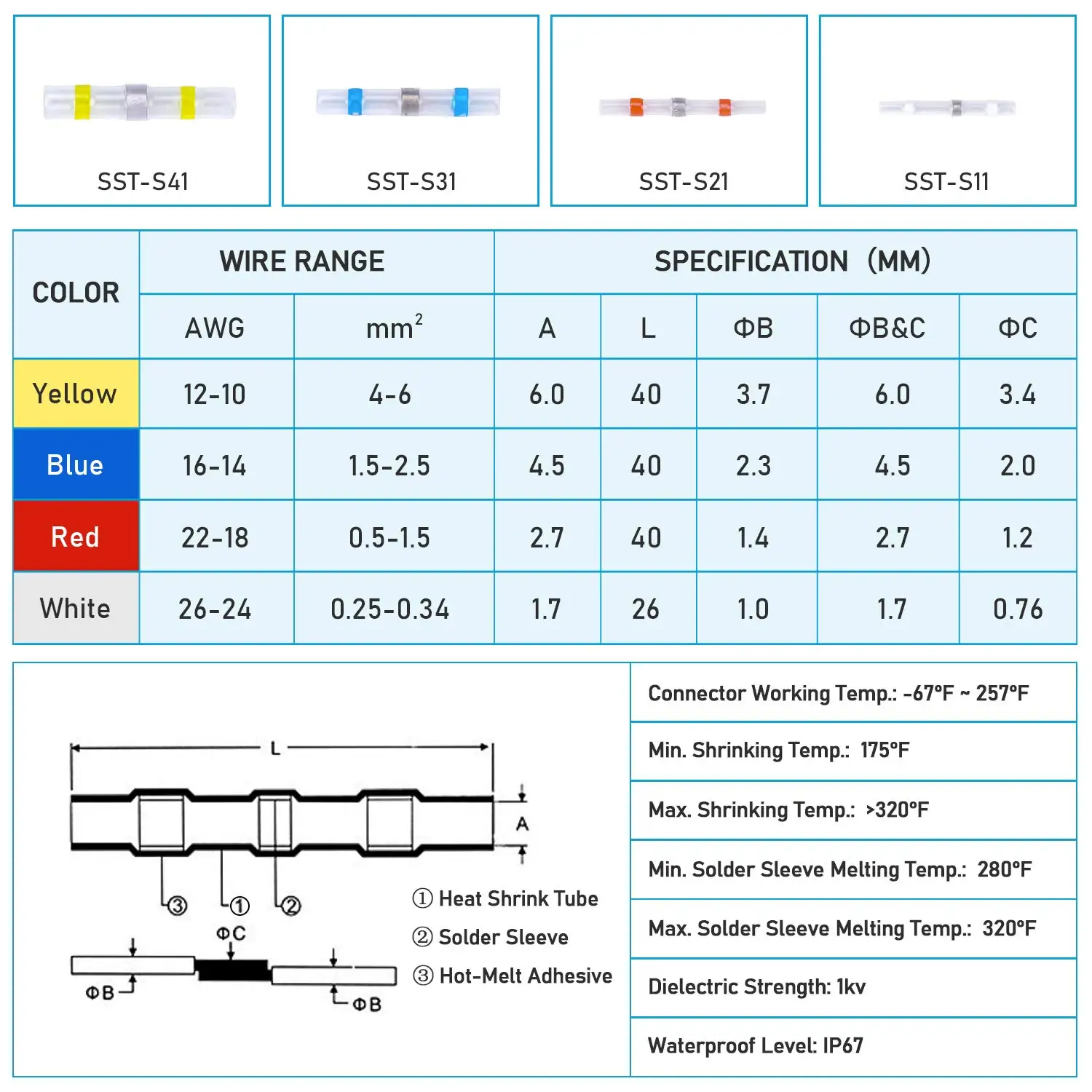 Соединители для паяных проводов, 5020 шт., термоусадочные стыковые ...
