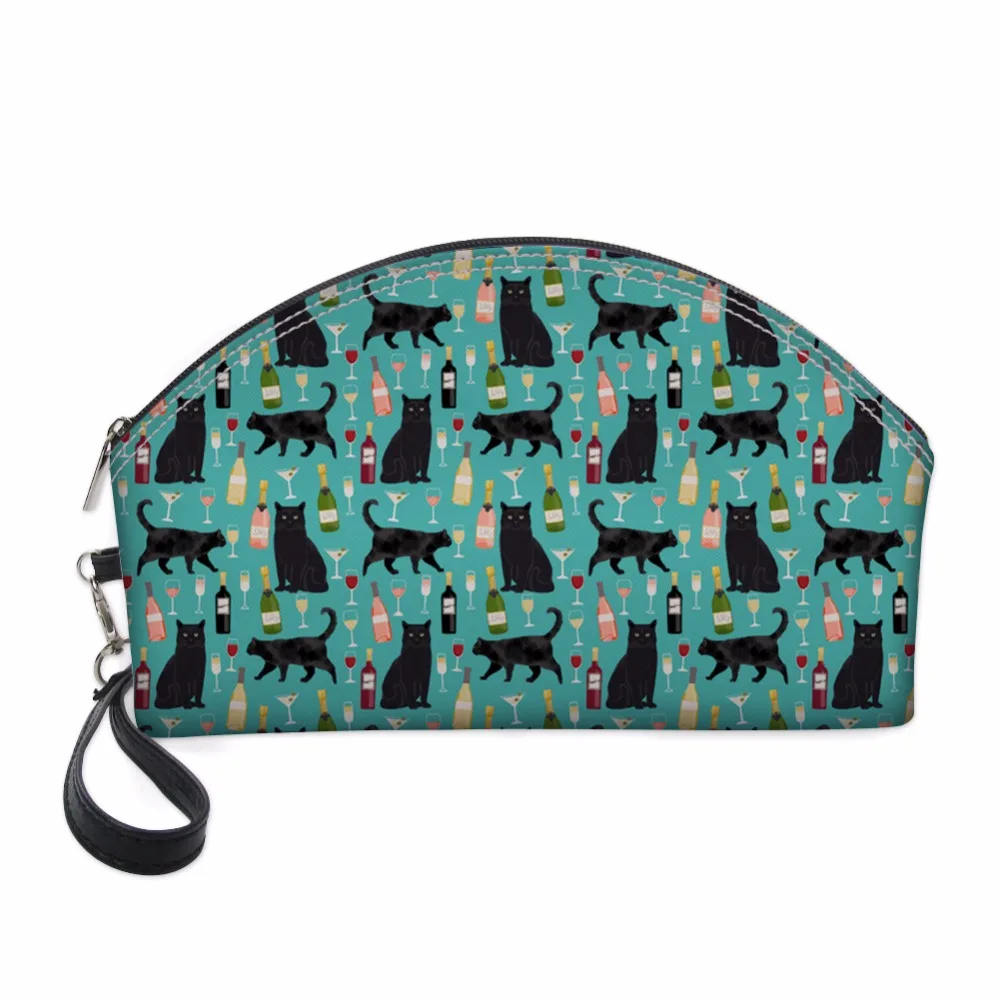 Бесшумные косметички для кошек с принтом вина из искусственной кожи, Несессер для путешествий, хранения косметики, косметический Органайзер