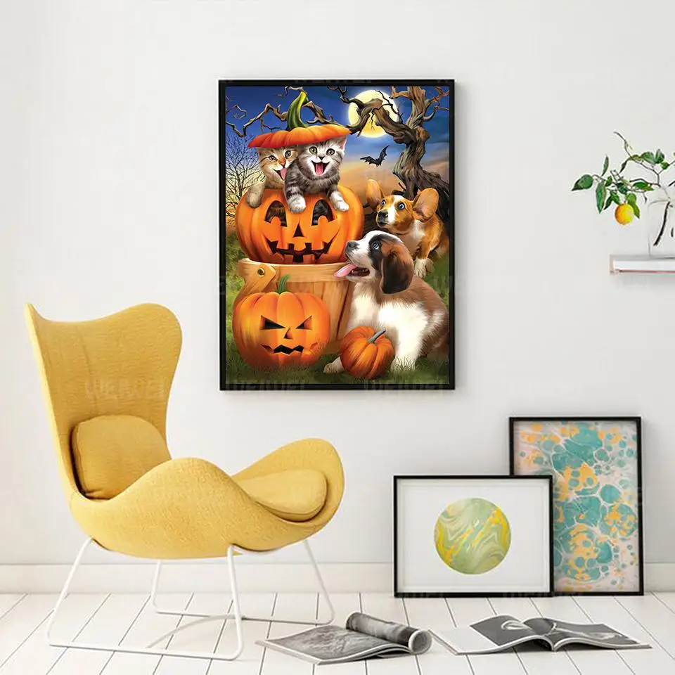 Крест на Хэллоуин наборы для вышивки 5D, алмазная вышивка, картина, Мультяшные стразы, искусство, собака, ручной работы, хобби ручная работа подарок