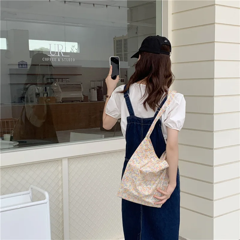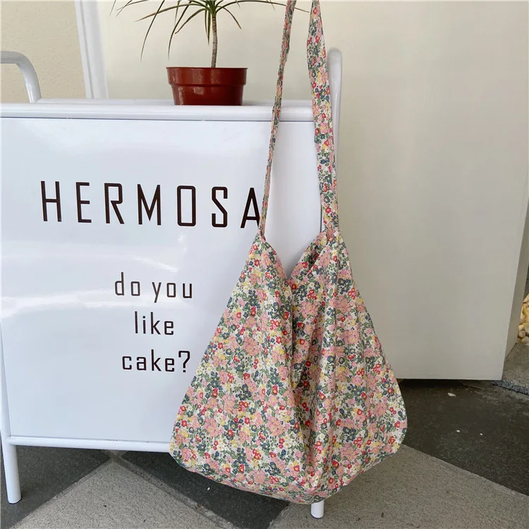 Винтажные Цветочные дамские сумочки, тонкие хлопковые тканевые женские мессенджеры на плечо с цветами, Экологически чистая многоразовая большая сумка для покупок для девушек